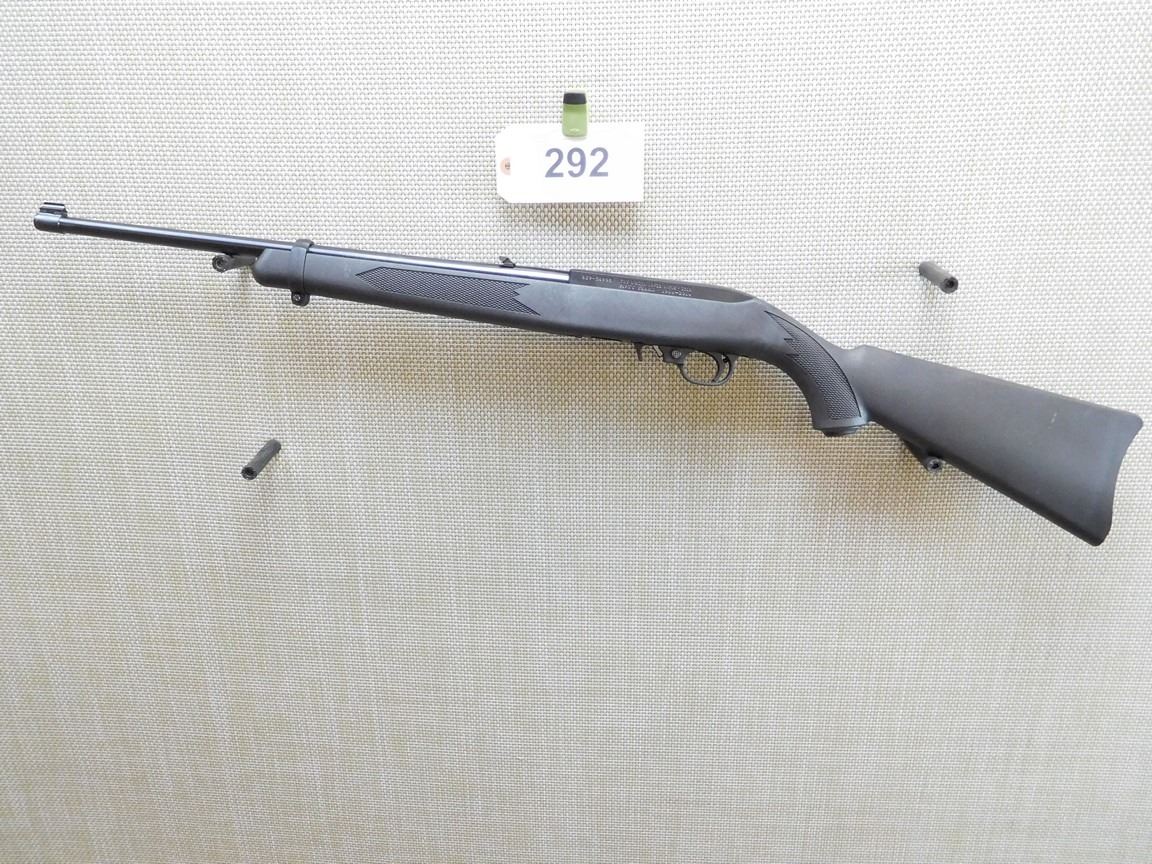 COMES WITH BOX, MAGAZINE, MANUAL , LOCK, ACCESSORIES, BLACK SYNTHETIC CHECKERED STOCK WITH A CAPPED PISTOL GRIP, SLING STUDS, BORE IS EXCELLENT, FIXED FRONT AND FOLDING REAR SIGHT, DRILLED AND TAPPED FOR SCOPE MOUNTS , BARREL LENGTH: 18 1/2" , SERIAL: 82934998 , ACTION: SEMI AUTOMATIC RIFLE , CONDITION: 9/10 , STOCK # 6757 , CLASS: CANADIAN NON RESTRICTED CLASS