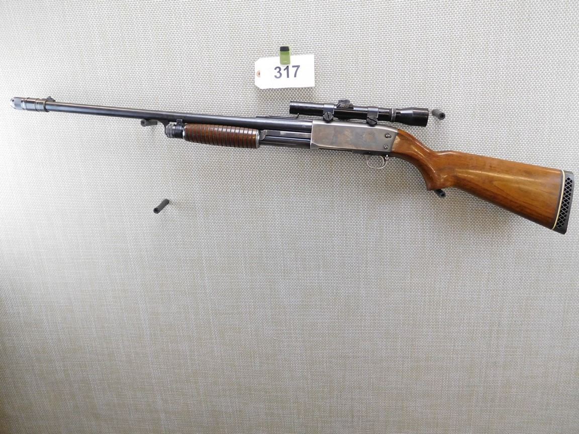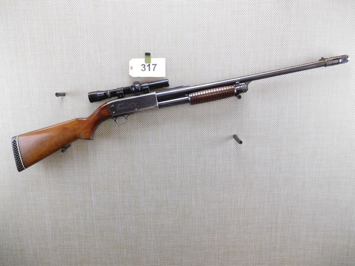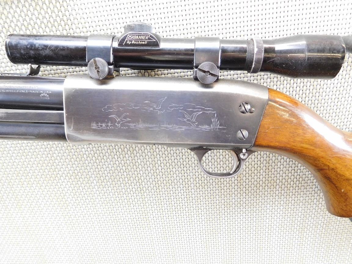 COMES WITH AN EXTERNAL LYMAN ADJUSTABLE CHOKE SYSTEM, BUSHNELL BANNER 2.5 SCOPE, MAINTAINS ORIGINAL BACK SIGHT, MISSING THE ELEVATOR, RUBBER RECOIL PAD, BORE IS EXCELLENT, LIGHT RUST MARKS ON TOP OF BARREL , BARREL LENGTH: 24" , SERIAL: 740269 , ACTION: PUMP ACTION SHOTGUN , CONDITION: 7/10 , STOCK # 6782 , CLASS: CANADIAN NON RESTRICTED CLASS