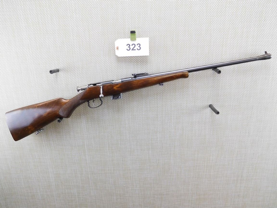 COMES WITH MAGAZINE, POST FRONT AND ADJUSTABLE REAR SIGHT, FEATURES THE UNIQUE TOZ MUZZLE, WOOD IS CHECKERED WITH A SEMI PISTOL GRIP, STEEEL BUTT PLATE, BORE IS EXCELLENT , BARREL LENGTH: 21" , SERIAL: A5606 , ACTION: BOLT ACTION REPEATER RIFLE , CONDITION: 8/10 , STOCK # 6788 , CLASS: CANADIAN NON RESTRICTED CLASS