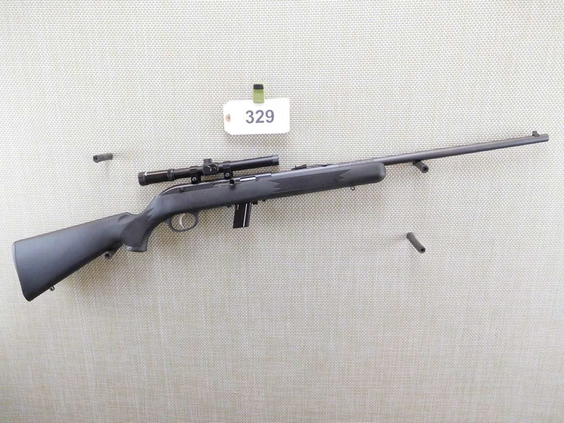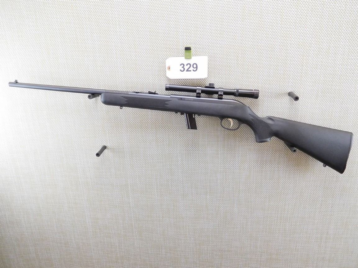 COMES WITH MAGAZINE, FIXED FRONT AND ADJUSTABLE REAR SIGHTS, HAS A TASCO SCOPE, BLACK SYNTHETIC CHECKERED FULL PISTOL GRIP BUTT STOCK, SLING SWIVEL LOOPS, BORE IS EXCELLENT , BARREL LENGTH: 21" , SERIAL: 2533035 , ACTION: SEMI AUTOMATIC RIFLE , CONDITION: 9/10 , STOCK # 6794 , CLASS: CANADIAN NON RESTRICTED CLASS