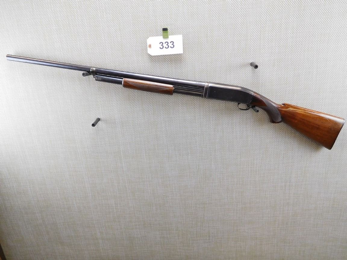 FULL CHOKE, CHECKERED FOREND AND PISTOL GRIP BUTT STOCK, HARD RUBBER BUTT PLATE, BEAD FRONT SIGHT, BORE IS FAIR , BARREL LENGTH: 30" , SERIAL: N/A , ACTION: PUMP ACTION SHOTGUN , CONDITION: 7/10 , STOCK # 6798 , CLASS: CANADIAN NON RESTRICTED CLASS