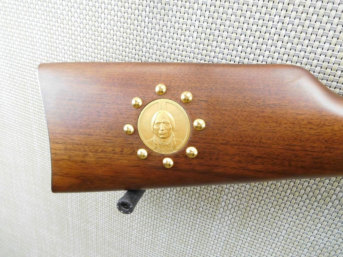 COMES WITH ORIGINAL BOX, UNFIRED CONDITION, AS ORIGINALLY CONFIGURED, SIOUX MOTIFS , BARREL LENGTH: 20" , SERIAL: SU11391 , ACTION: LEVER ACTION RIFLE , CONDITION: NEW IN BOX , STOCK # 6801 , CLASS: CANADIAN NON RESTRICTED CLASS