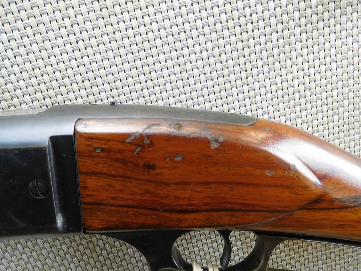 CRESCENT BUTT PLATE, SLING SWIVEL STUDS, DOVETAIL FRONT AND ADJUSTABLE REAR SIGHT, GOOD BORE, DRILLED AND TAPPED FOR SCOPE MOUNTS , BARREL LENGTH: 26" , SERIAL: 266952 , ACTION: LEVER ACTION RIFLE , CONDITION: 7/10 , STOCK # 6814 , CLASS: CANADIAN NON RESTRICTED CLASS