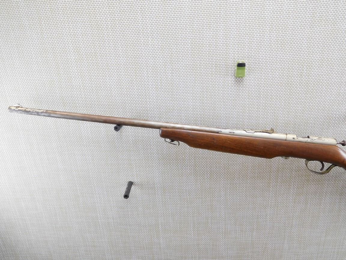 CRACKED STOCK, PAINTED BARREL, BORE IS GOOD, DOVETAILED FRONT AND ADJUSTABLE REAR SIGHT , BARREL LENGTH: 27" , SERIAL: N/A , ACTION: SINGLE SHOT BOLT ACTION RIFLE , CONDITION: 3/10 , STOCK # 6831 , CLASS: CANADIAN NON RESTRICTED CLASS