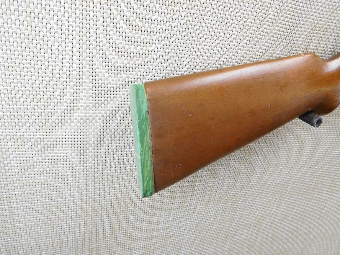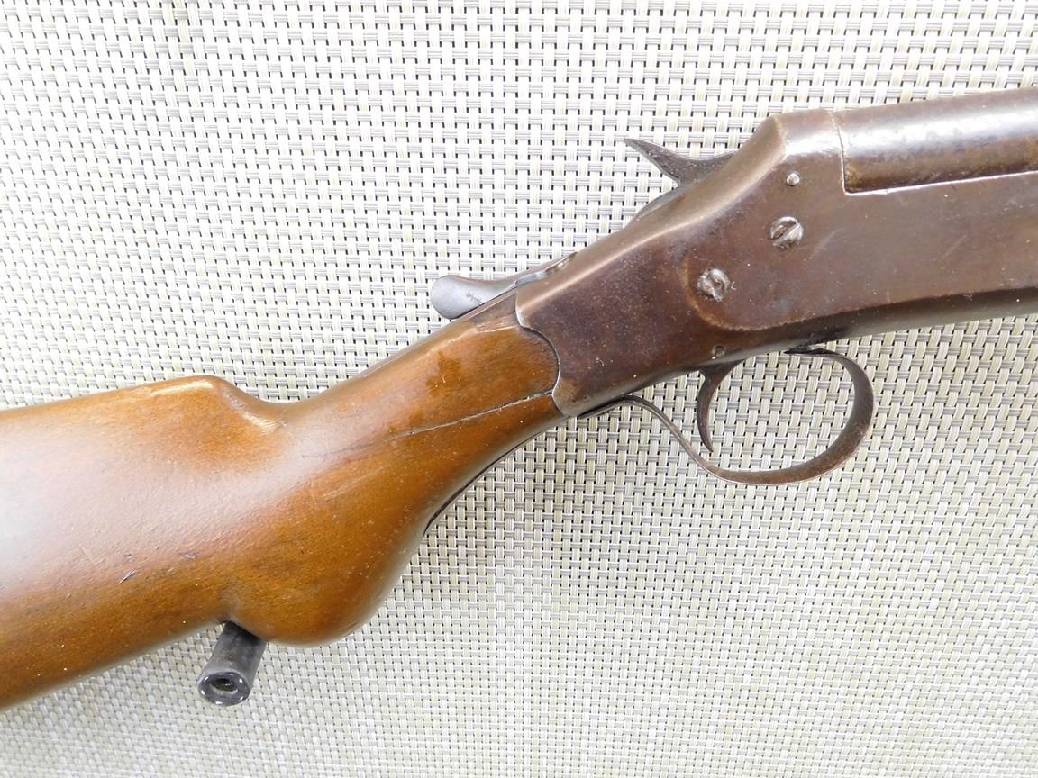 REPLACED RUBBER BUTT PAD, CRACK AND CHIPPE BUTT STOCK, BEAD FRONT SIGHT, BROWN PATINA, DARK BORE, FULL CHOKE , BARREL LENGTH: 30" , SERIAL: N/A , ACTION: SINGLE SHOT BREAK ACTION SHOTGUN , CONDITION: 5/10 , STOCK # 6832 , CLASS: CANADIAN NON RESTRICTED CLASS