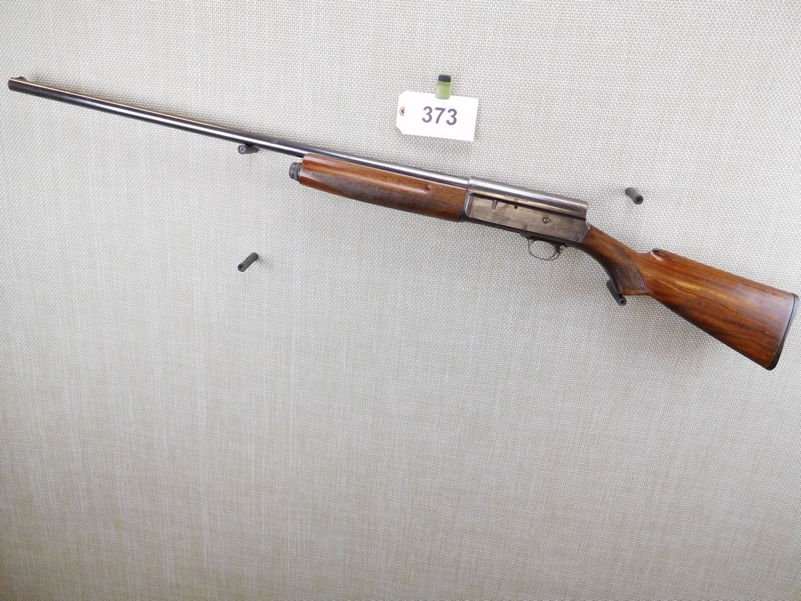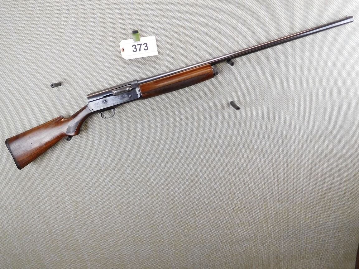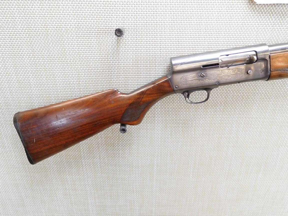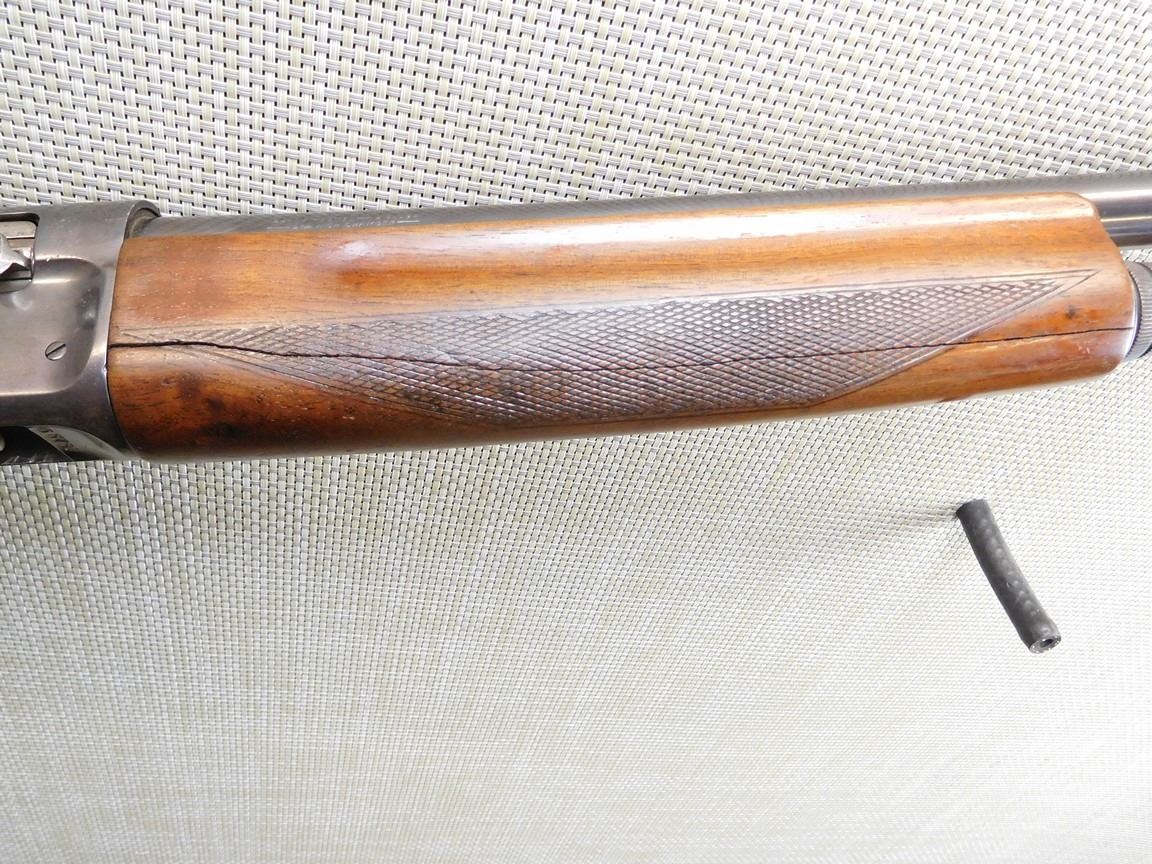 BEAD FRONT SIGHT, ENGRAVED DUCK SCENE ON RECEIVER, FULL LENGTH CRACK IN THE FOREND, HARD RUBBER BUTT PLATTE, CHECKERED FOREND AND PISTOL GRIP, BORE GOOD , BARREL LENGTH: 30" , SERIAL: 65757 , ACTION: SEMI AUTOMATIC SHOTGUN , CONDITION: 6/10 , STOCK # 6838 , CLASS: CANADIAN NON RESTRICTED CLASS