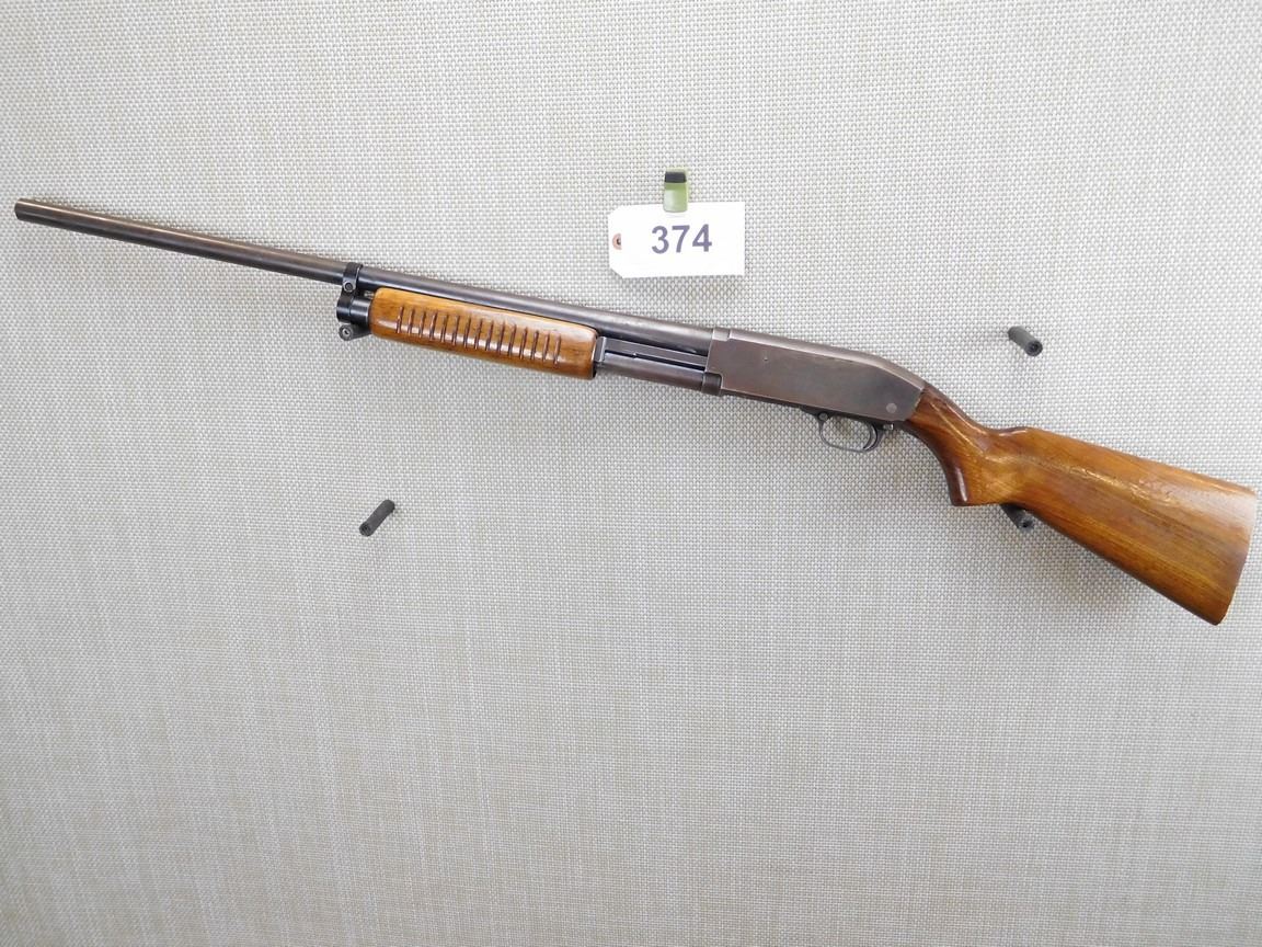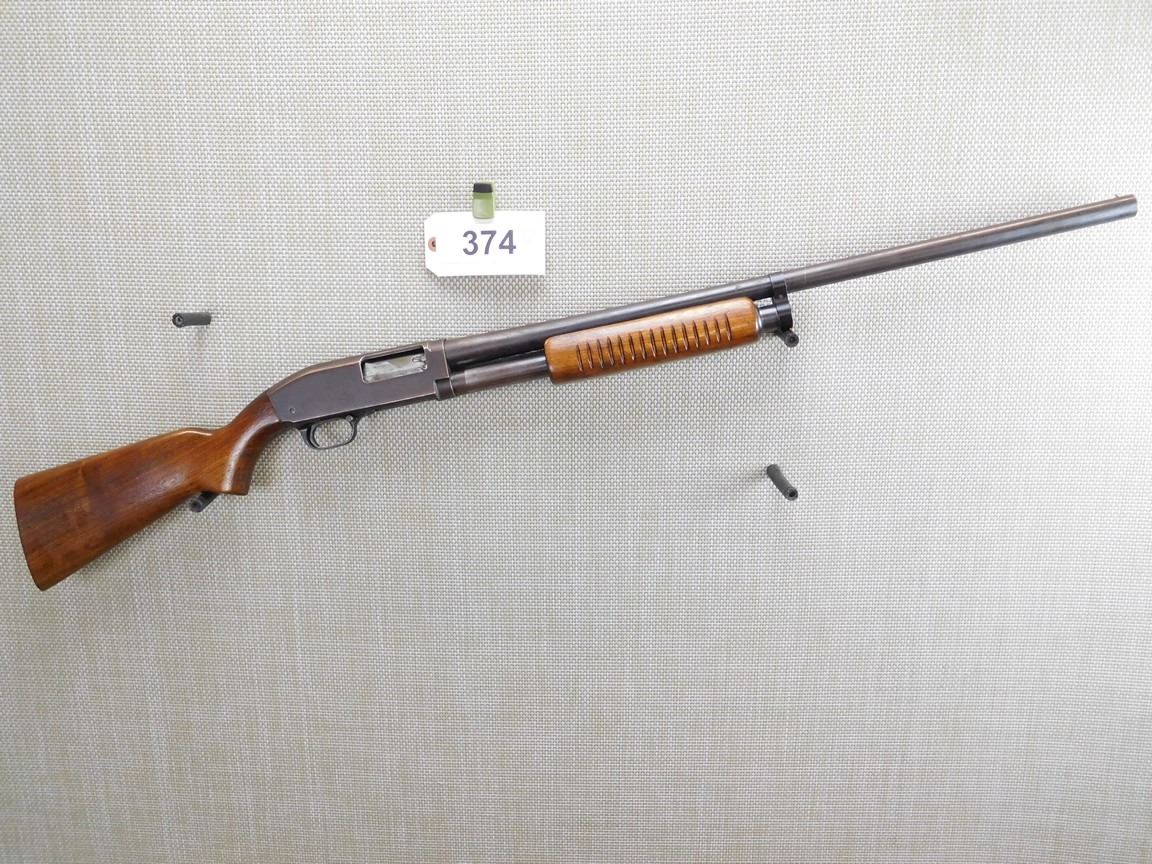 REPLACED BRASS FRONT SIGHT NOT ORIGINAL TO FIREARM, MISSING THE BUTT PLATE, BORE IS GOOD, FIXED FULL CHOKE , BARREL LENGTH: 27" , SERIAL: N/A , ACTION: PUMP ACTION SHOTGUN , CONDITION: 7/10 , STOCK # 6839 , CLASS: CANADIAN NON RESTRICTED CLASS