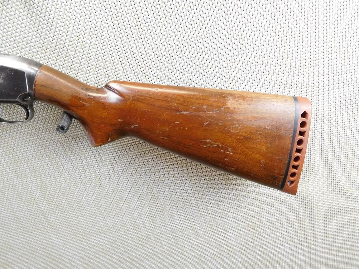 MANUFACTURED IN 1947, SHOOTING-MASTER EXTERNAL CHOKE SYSTEM, CRACK IN THE BUTT STOCK AT THE WRIST, BORE IS FAIR, VENTED RUBBER RECOIL PAD, BEAD FRONT SIGHT , BARREL LENGTH: 28" , SERIAL: 1171804 , ACTION: PUMP ACTION SHOTGUN , CONDITION: 6/10 , STOCK # 6855 , CLASS: CANADIAN NON RESTRICTED CLASS