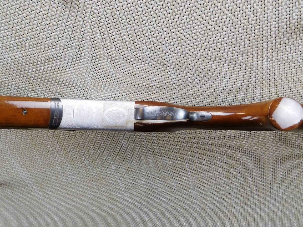 VENTELATED TOP AND MID RIB BAREL, BEAD FRONT SIGHT, EXTRACTORS, SINGLE SELECTIVE TRIGGER, VENTED RUBBER RECOIL PAD, CHECKERED FOREND AND PISTOLG GRIP, RICHLY ENGRAVED RECEIVER, EXCELLENT BORE, FIXED FULL AND MODIFIED CHOKE , BARREL LENGTH: 30 1/2" , SERIAL: 9517B , ACTION: OVER UNDER SHOTGUN , CONDITION: 9/10 , STOCK # 6858 , CLASS: CANADIAN NON RESTRICTED CLASS