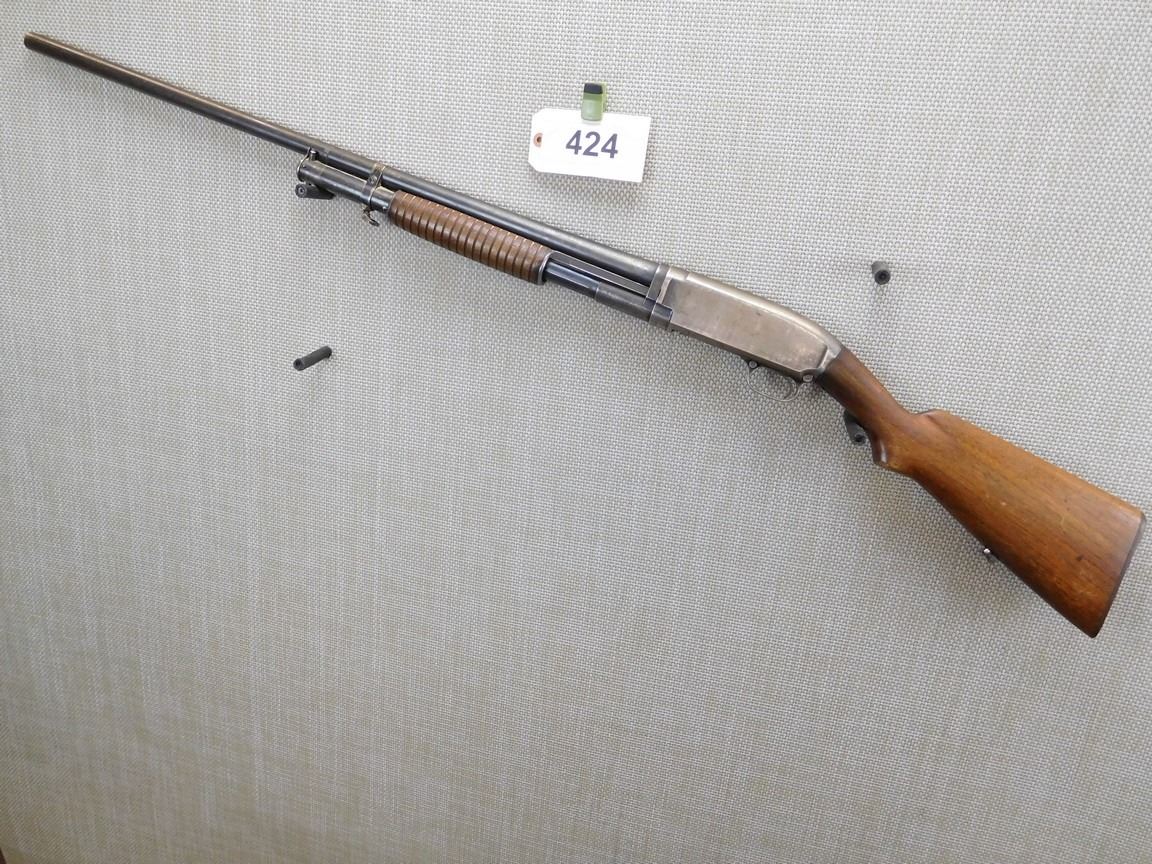 MANUFACTURED IN 1927, FIXED FULL CHOKE, BORE IS GOOD, SLING SWIVELS, CHIP OUT OF PISTOL GRIP AND THE WRIST, HARD RUBBER BUTT PLATE, BEAD FRONT SIGHT , BARREL LENGTH: 32" , SERIAL: 518759 , ACTION: PUMP ACTION SHOTGUN , CONDITION: 6/10 , STOCK # 6890 , CLASS: CANADIAN NON RESTRICTED CLASS