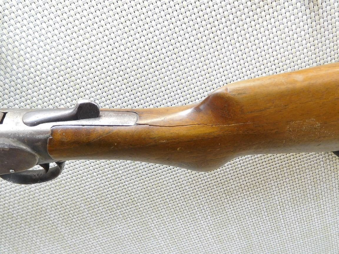 HAS GERMAN PROOFS, CYLINDER BORE, BEAD FRONT SIGHT, STEEL BUTT PLATE, MINOR CHIPS AT BUTT PLATE, MAJOR CRACK AT THE WRIST , BARREL LENGTH: 29 1/2" , SERIAL: 17652 , ACTION: SINGLE SHOT BREAK ACTION SHOTGUN , CONDITION: 5/10 , STOCK # 6895 , CLASS: CANADIAN NON RESTRICTED CLASS