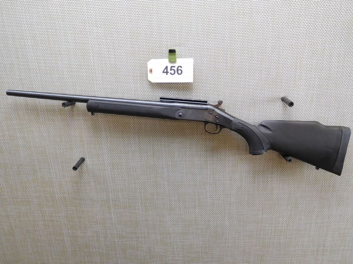 BLACK SYNTHETIC STOCK WITH A SCOPE RAIL, NO SIGHTS, FULL PISTOL GRIP WITH THICK RUBBER RECOIL PAD, BORE IS EXCELLENT , BARREL LENGTH: 22" , SERIAL: 338898 , ACTION: SINGLE SHOT BREAK ACTION , CONDITION: 9/10 , STOCK # 6922 , CLASS: CANADIAN NON RESTRICTED CLASS