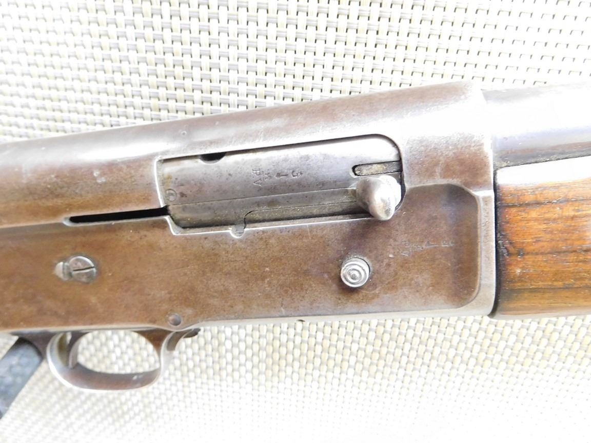 BEAD FRONT SIGHT, FIXED FULL CHOKE, BORE IS GOOD, SLING SWIVELS, HARD RUBBER BUTT PLATE , BARREL LENGTH: 27 1/2" , SERIAL: 48214 , ACTION: SEMI AUTOMATIC SHOTGUN , CONDITION: 6/10 , STOCK # 6927 , CLASS: CANADIAN NON RESTRICTED CLASS
