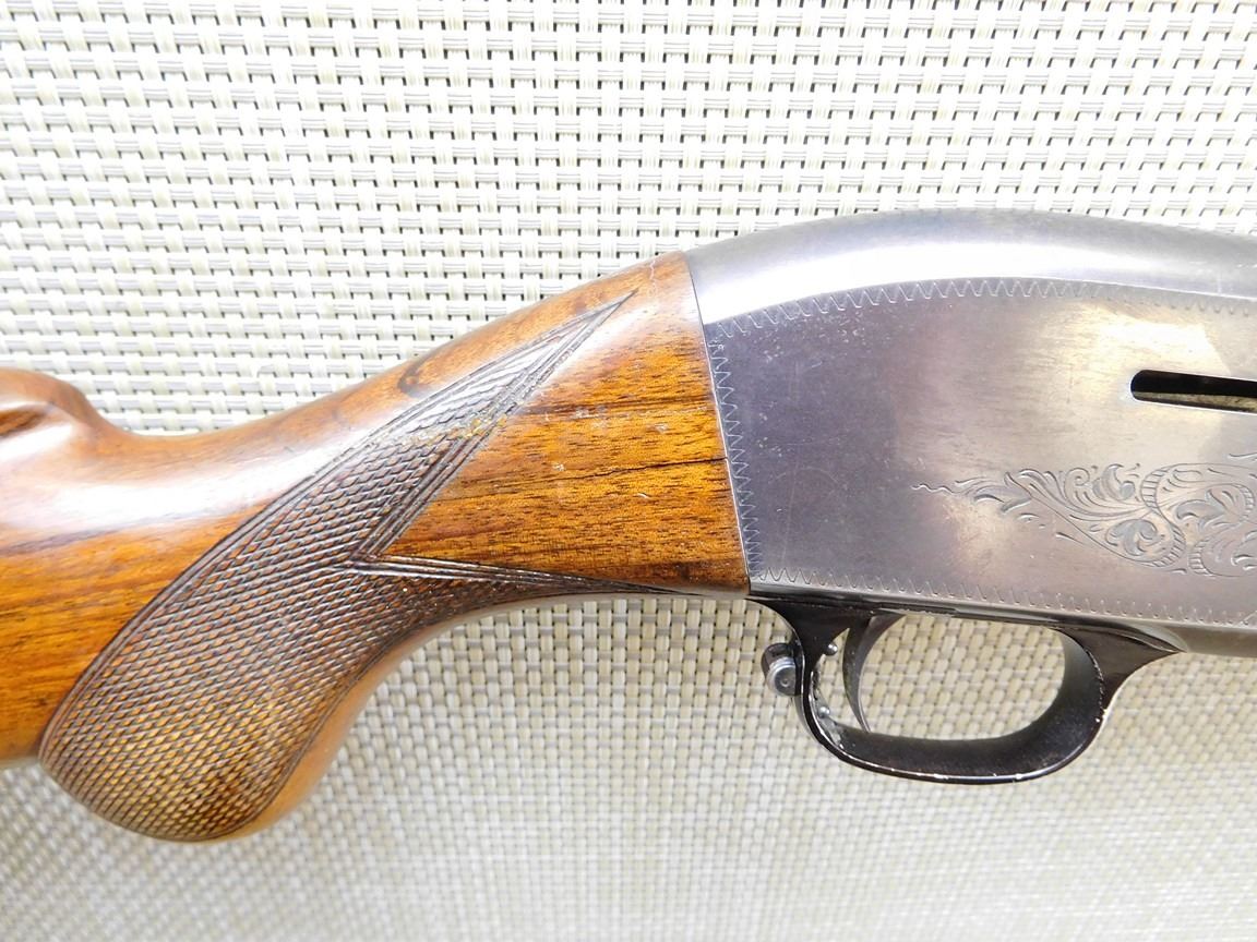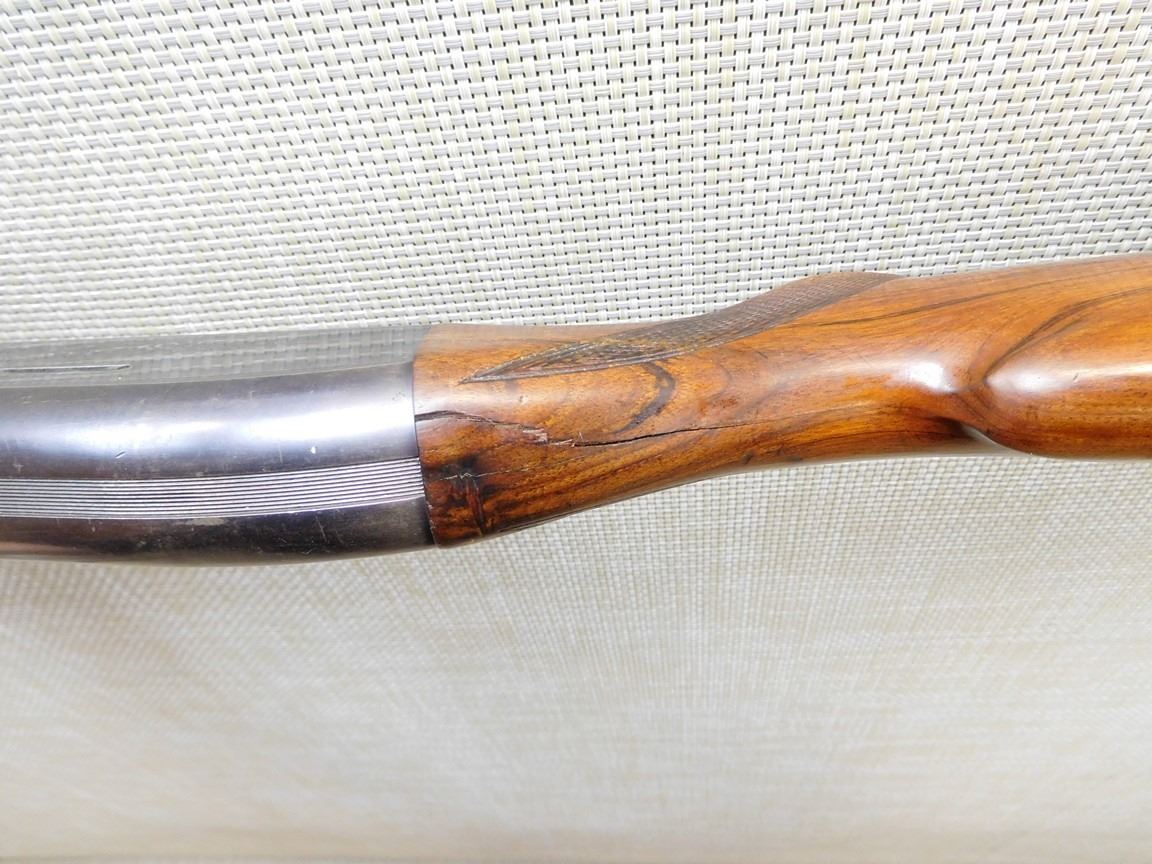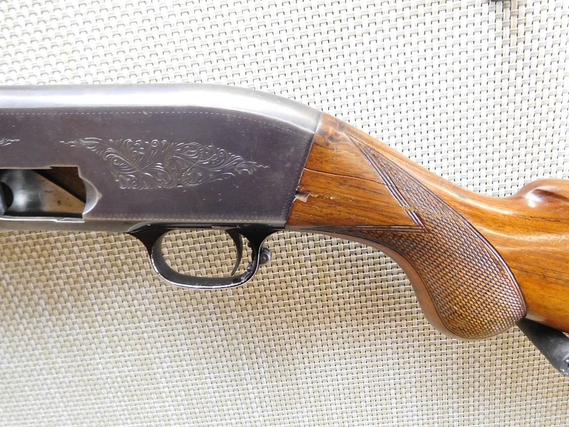 RAISED BEAD FRONT SIGHT, BORE IS VERY GOOD, CHOKE IS FIXED MODIFIED, CRACK IN THE STOCK AT THE WRIST, MISSING SLING SWIVEL STUDS, HARD RUBBER BUTT PLATE , BARREL LENGTH: 27 1/2" , SERIAL: N/A , ACTION: SEMI AUTOMATIC SHOTGUN , CONDITION: 6/10 , STOCK # 6933 , CLASS: CANADIAN NON RESTRICTED CLASS