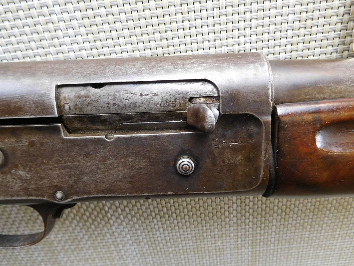 FIXED FULL CHOKE, CRACKED BUTT STOCK, WITH BROKEN BUTT PLATE, BROWN PATINA, BORE IS DARK, RAISED BEAD FRONT SIGHT , BARREL LENGTH: 28" , SERIAL: 111947 , ACTION: SEMI AUTOMATIC SHOTGUN , CONDITION: 4/10 , STOCK # 6936 , CLASS: CANADIAN NON RESTRICTED CLASS