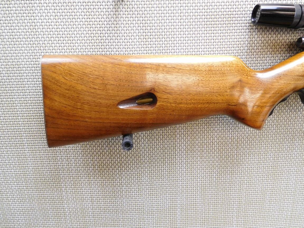 COMES WITH A BUSHNELL SCOPE 3-7X VARIABLE CUSTOM 22, NO IRON SIGHTS, TUBE MAGAZINE, MONTE CARLO STOCK WITH A HIGH POLISH FINISH, FULL WOOD STOCK, BORE IS GOOD , BARREL LENGTH: 20" , SERIAL: N/A , ACTION: SEMI AUTOMATIC RIFLE , CONDITION: 8/10 , STOCK # 6941 , CLASS: CANADIAN NON RESTRICTED CLASS