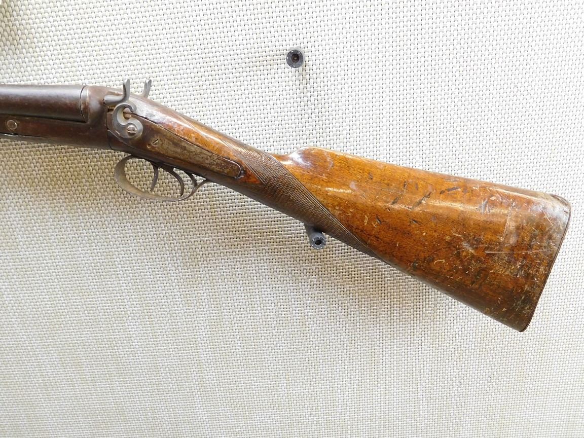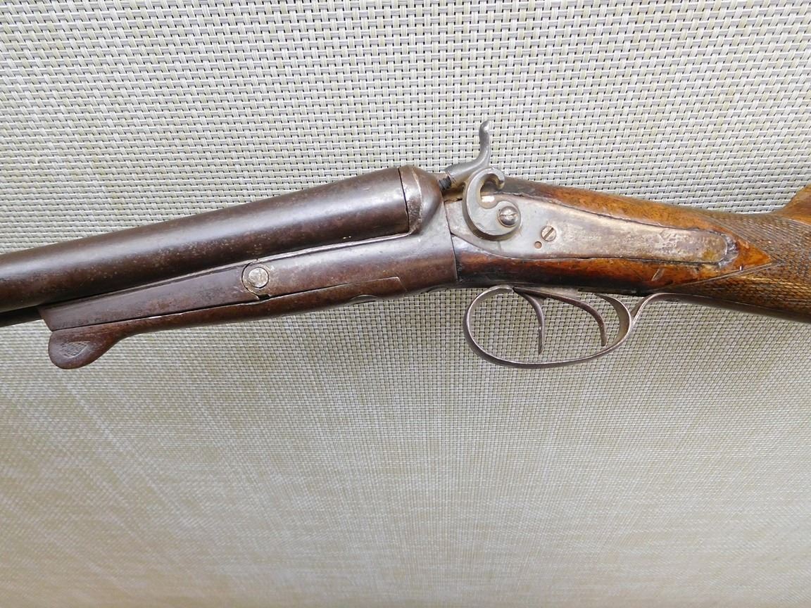 DARK BORES, FIXED FULL CHOKES, CHECKERED GRIP, EAD FRONT SIGHT, STEEL BUTT PLATE, APPEARS TO HAVE BEEN DEACTIVATED, FIRING PINS HAVE BEEN REMOVED AND REPLACED BY SCREWS , BARREL LENGTH: 29 1/2" , SERIAL: N/A , ACTION: UNDER LEVER OPENING EXTERNAL HAMMER SHOTGUN , CONDITION: 4/10 , STOCK # 7001 , CLASS: CANADIAN NON RESTRICTED CLASS