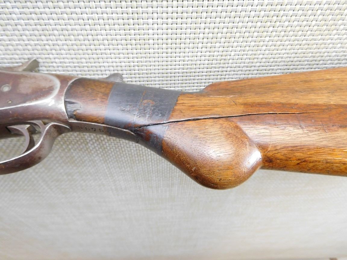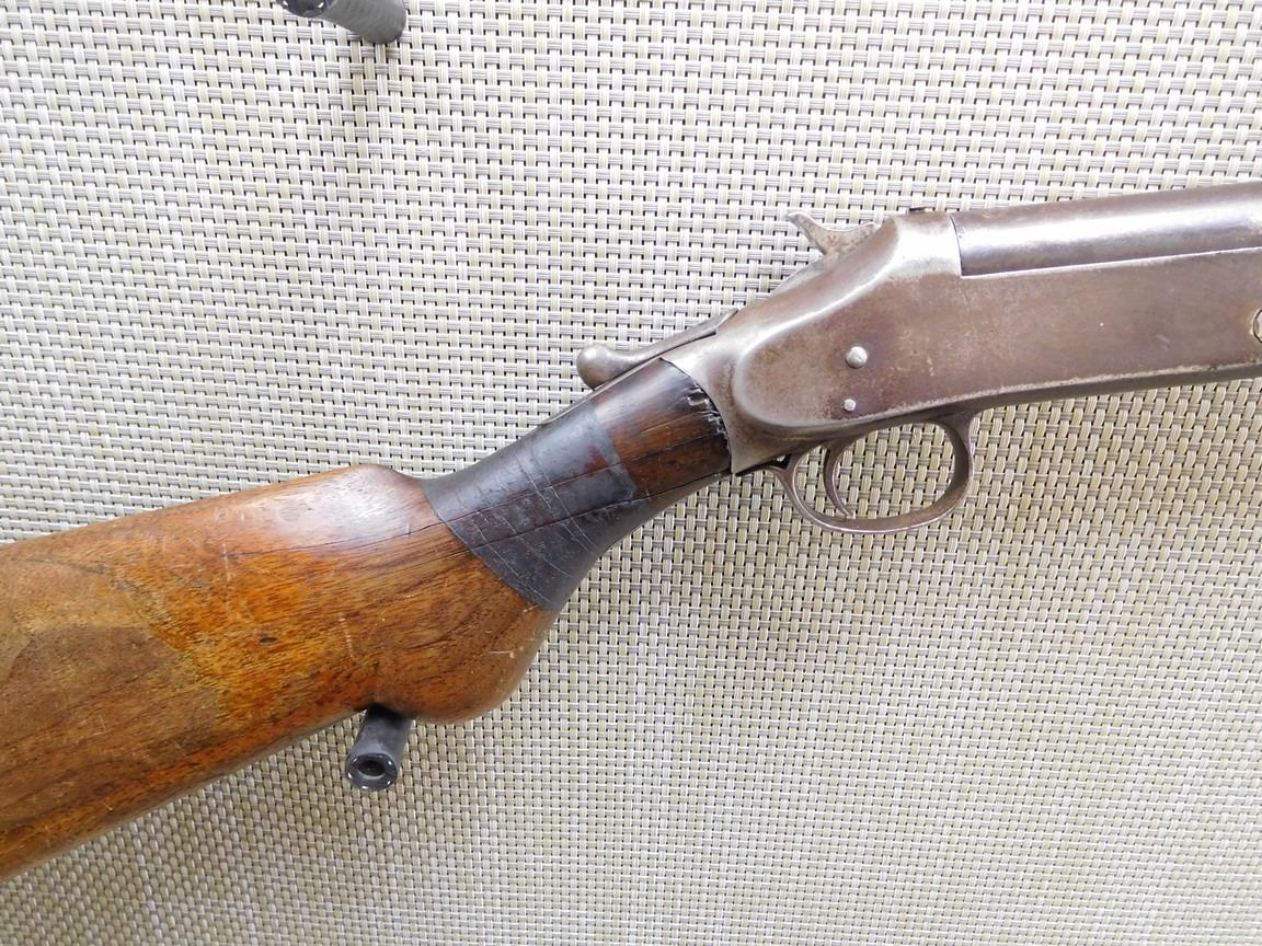 CYLINDER BORE, BORE IS GOOD, MISSING THE BEAD FRONT SIGHT, CRACKS AND SEVERAL CHIPS OUT OF THE WRIST, REPLACED LEATHER BUTT PLATE , BARREL LENGTH: 30" , SERIAL: N/A , ACTION: SINGLE SHOT BREAK ACTION SHOTGUN , CONDITION: 4/10 , STOCK # 7009 , CLASS: CANADIAN NON RESTRICTED CLASS