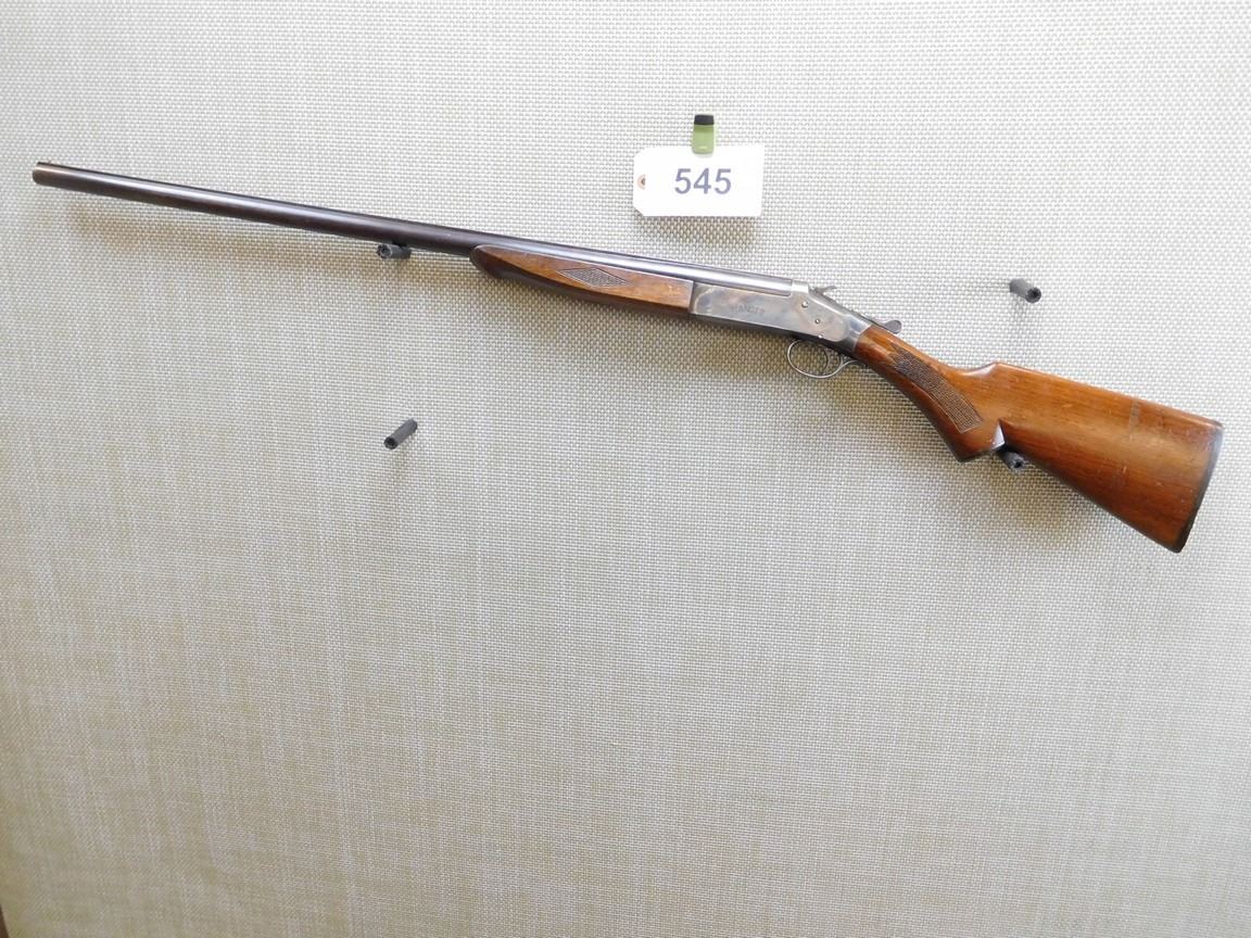 HAS EJECTORS, SOLID RIB, BEAD FRONT SIGHT, CHECKERED FOREND WITH CAPPED PISTOL GRIP WITH HARD RUBBER BUTT PLATE, BORE IS VERY GOOD, CHOKE IS FIXED FULL , BARREL LENGTH: 30" , SERIAL: N/A , ACTION: SINGLE SHOT BREAK ACTION SHOTGUN , CONDITION: 6/10 , STOCK # 7011 , CLASS: CANADIAN NON RESTRICTED CLASS