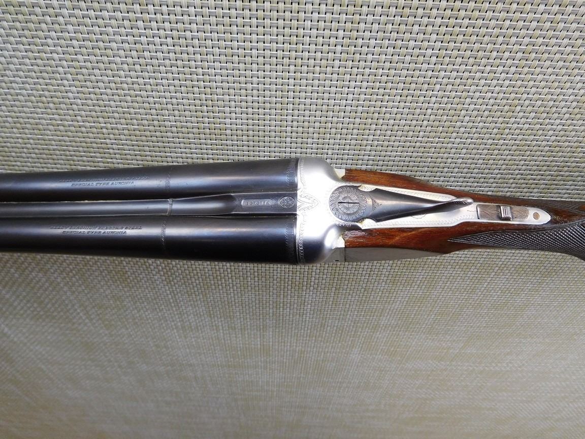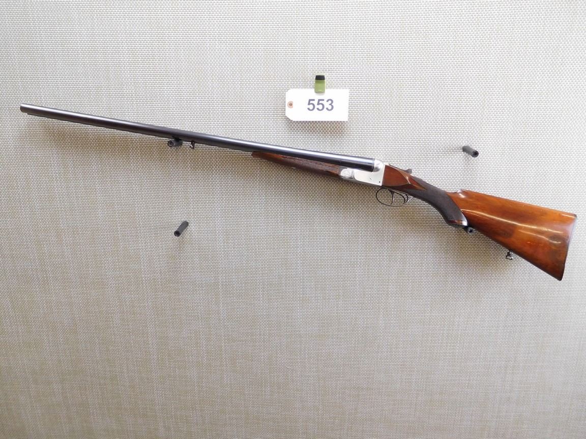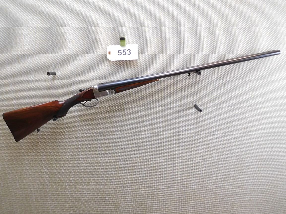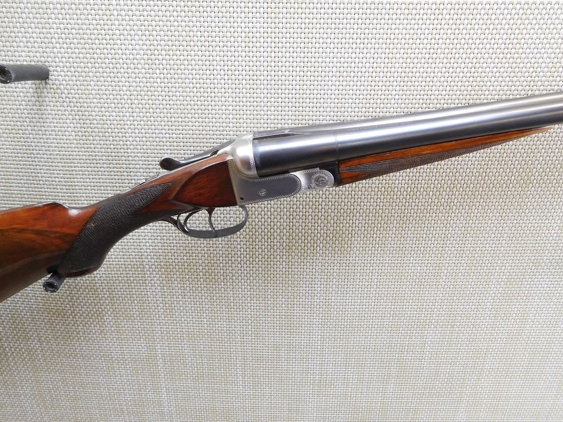 FIXED FULL AND MODIFIED CHOKES, BORES ARE EXCELLENT, BEAD FRONT SIGHT, CHECKERED FOREND AND CAPPED PISTOL GRIP, HARD RUBBER BUTT PLATE, SLING SWIVELS, LIGHTLY ENGRAVED BOX LOCK , BARREL LENGTH: 28 1/2" , SERIAL: 71232 , ACTION: SIDE BY SIDE BREAK ACTION , CONDITION: 9/10 , STOCK # 7019 , CLASS: CANADIAN NON RESTRICTED CLASS