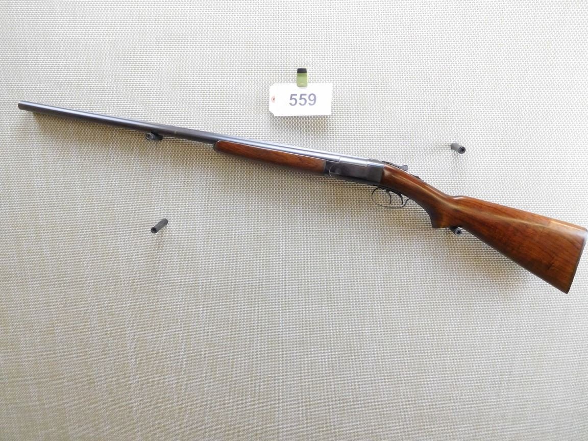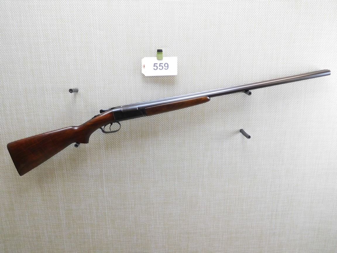 MANUFACTURED CIRCA 1957, EJECTORS, BEAD FRONT SIGHT, EXCELLENT BORES, FIXED CYLINDER AND FULL CHOKES, BEAD FRONT SIGHT, HARD RUBBER BUTT PLATE , BARREL LENGTH: 28" , SERIAL: 111769 , ACTION: SIDE BY SIDE BREAK ACTION SHOTGUN , CONDITION: 8/10 , STOCK # 7025 , CLASS: CANADIAN NON RESTRICTED CLASS