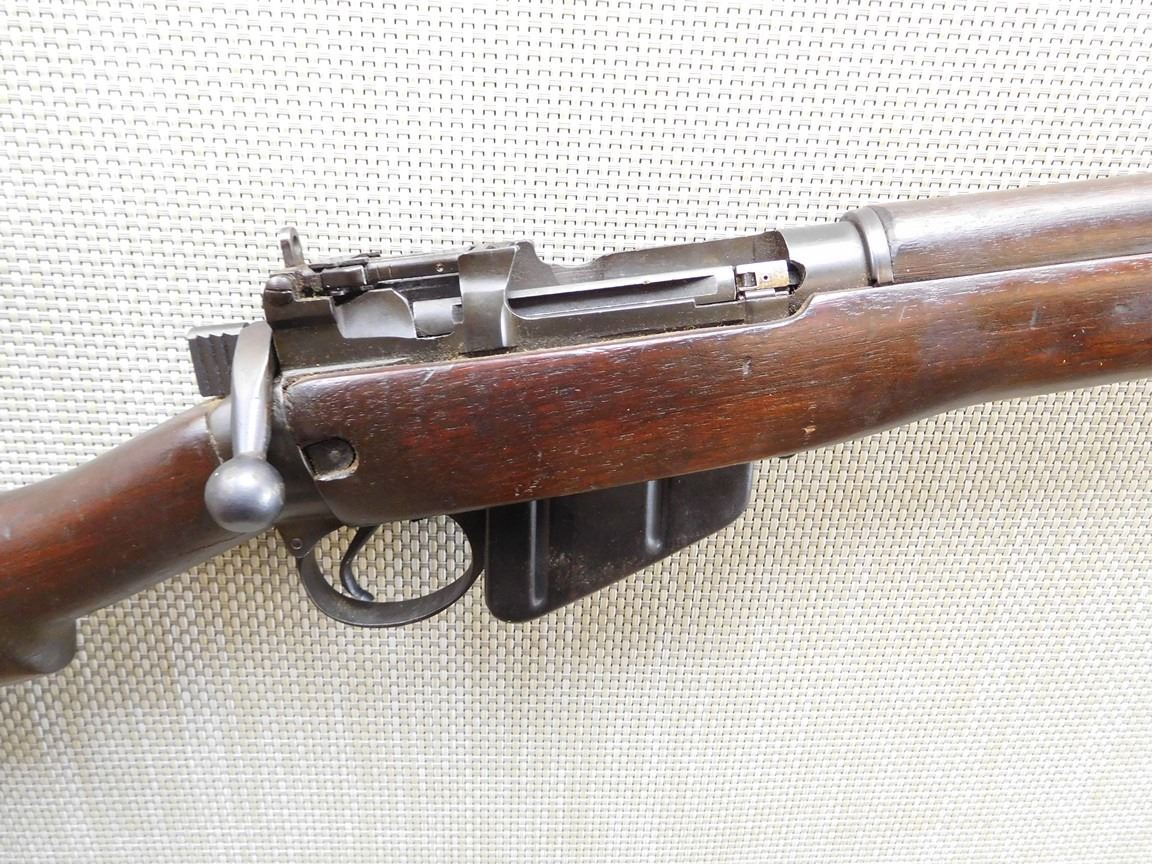 COMES WITH MAGAZINE, DATED 1943, BOLT AND RECEIVER MATCH SERIAL #'S, STOCK IS BRD ARROW MARKED, FULL WOOD MILITARY CONFIGURATION, COMES WITH SLING LOOPS,ADJUSTABLE SIGHTS, THE ACTION HAS BEEN CUT TO PARTIALLY DEACTIVATE THE FIREARM, CAN'T BE FIRED , BARREL LENGTH: 25.25 , SERIAL: 41L7279 , ACTION: BOLT ACTION RIFLE , CONDITION: 6/10 PARTICALLY DEACTIVATED , STOCK # 7038 , CLASS: CANADIAN NON RESTRICTED CLASS