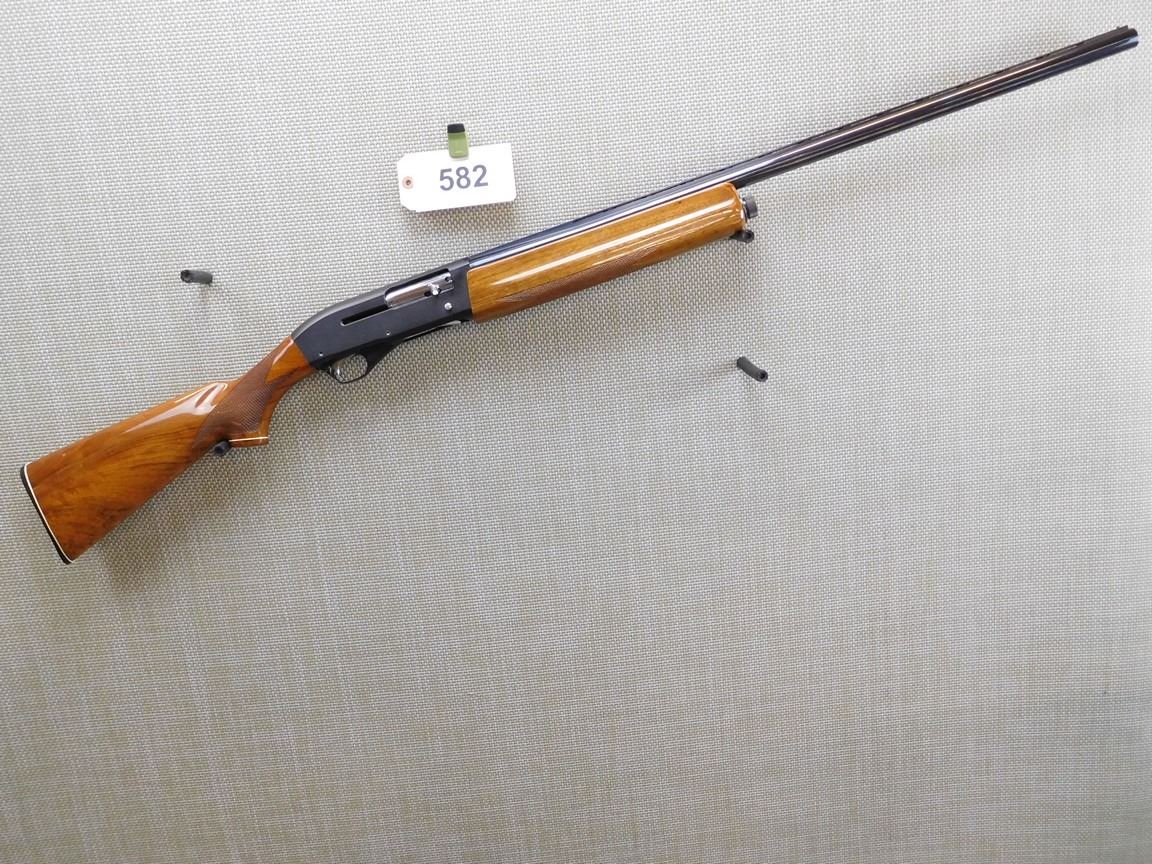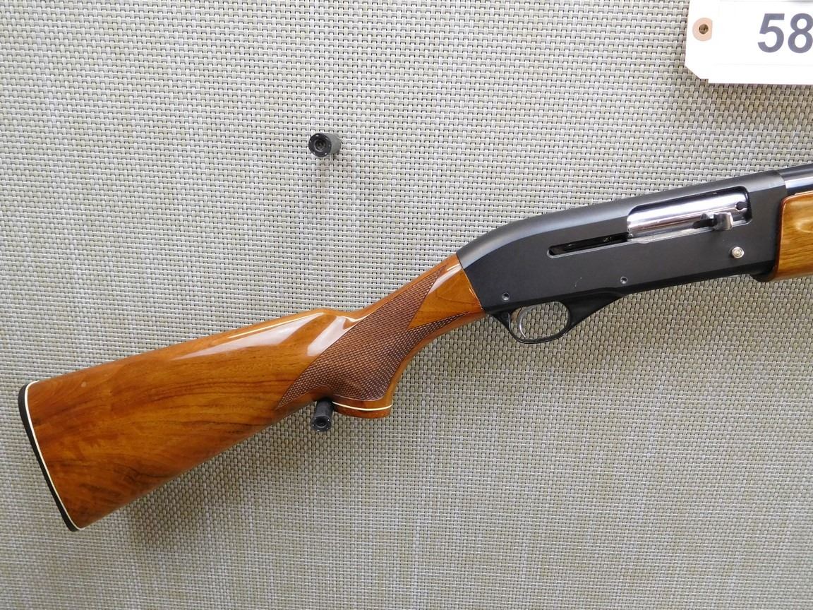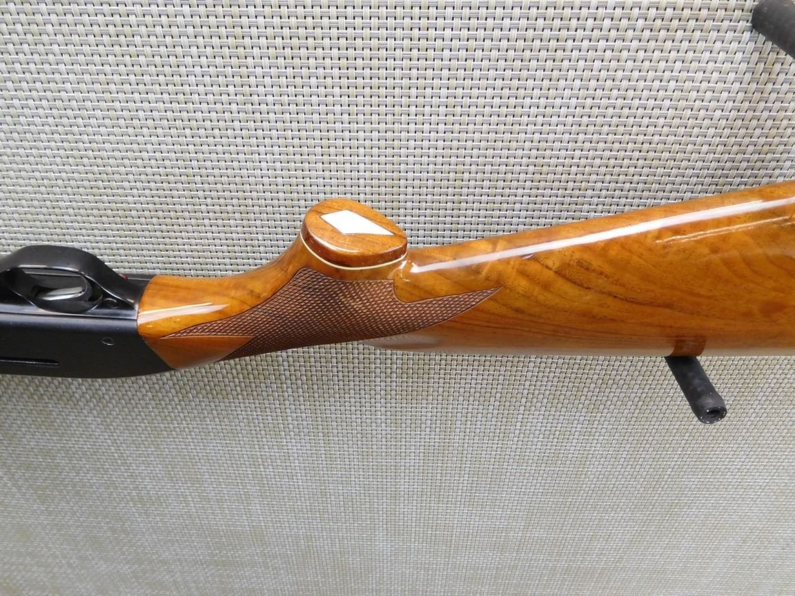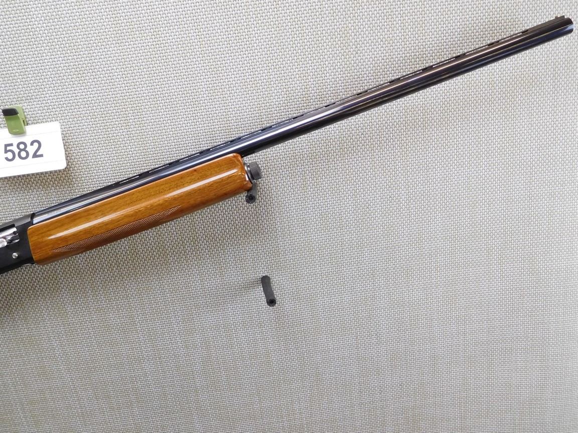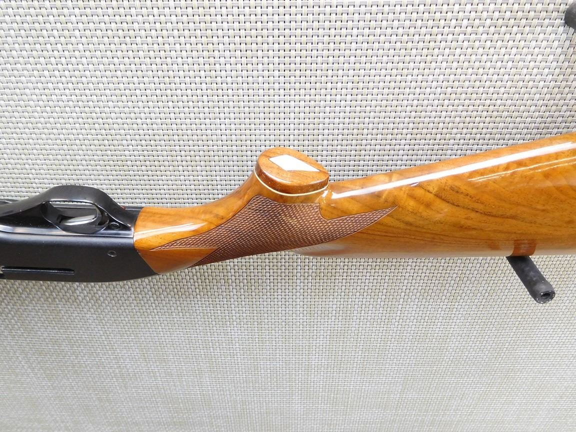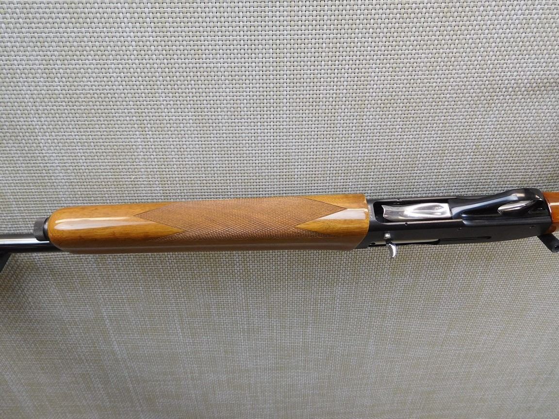 RAISED VENTED RIB, BEAD FRONT SIGHT, HARD RUBBER BUTT PLATE, CHECKERED PISTOL GRIP AND FORESTOCK THAT ARE HIGH POLISH, FIXED FULL CHOKE, BRILLIANT BORE , BARREL LENGTH: 30" , SERIAL: J23386 , ACTION: SEMI AUTOMATIC SHOTGUN , CONDITION: 9/10 , STOCK # 7048 , CLASS: CANADIAN NON RESTRICTED CLASS