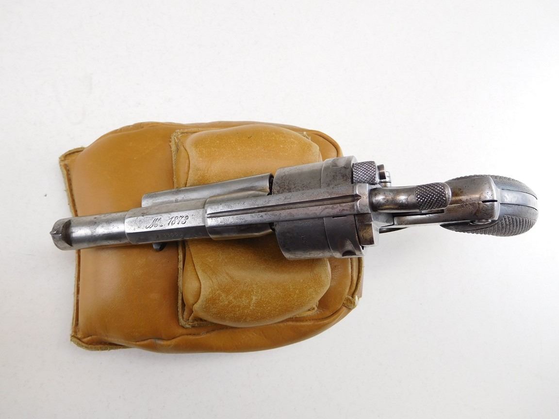 DATED 1876, TRIGGER RETURN SPRING IS BROKEN, CHECKERED WOODEN GRIPS, LANYARD RING, DOUBLE ACTION, NOTCH AND BLADE SIGHT, SPRING LOADED EXTRACTOR, MATCHING SERIAL NUMBERS , BARREL LENGTH: 114MM , SERIAL: F88331 , ACTION: REVOLVER , CONDITION: 7/10 ANTIQUE , , CLASS: CANADIAN ANTIQUE CLASS