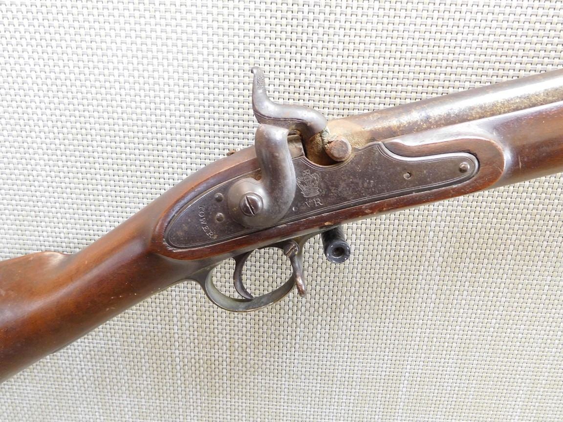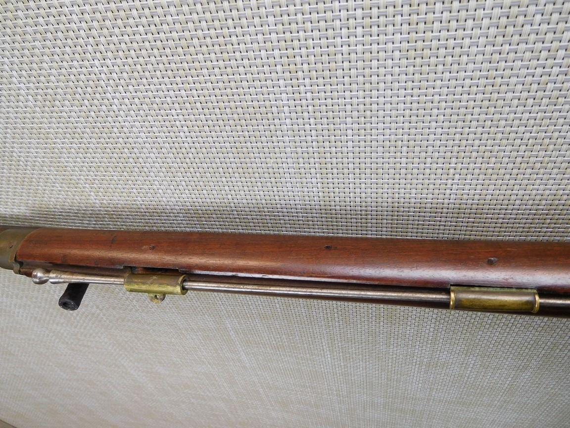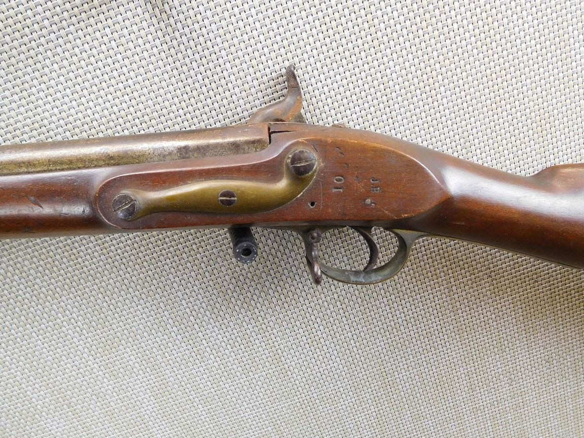 SPORTERIZED WOOD, NOTCH AND BEAD SIGHT, METAL BUTT PLATE, GREY PATINA , BARREL LENGTH: , SERIAL: N/A , ACTION: PERCUSSION CONVERSION , CONDITION: 4/10 ANTIQUE , , CLASS: CANADIAN ANTIQUE CLASS
