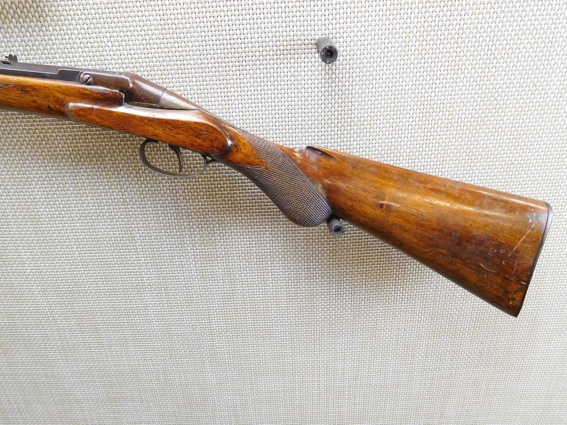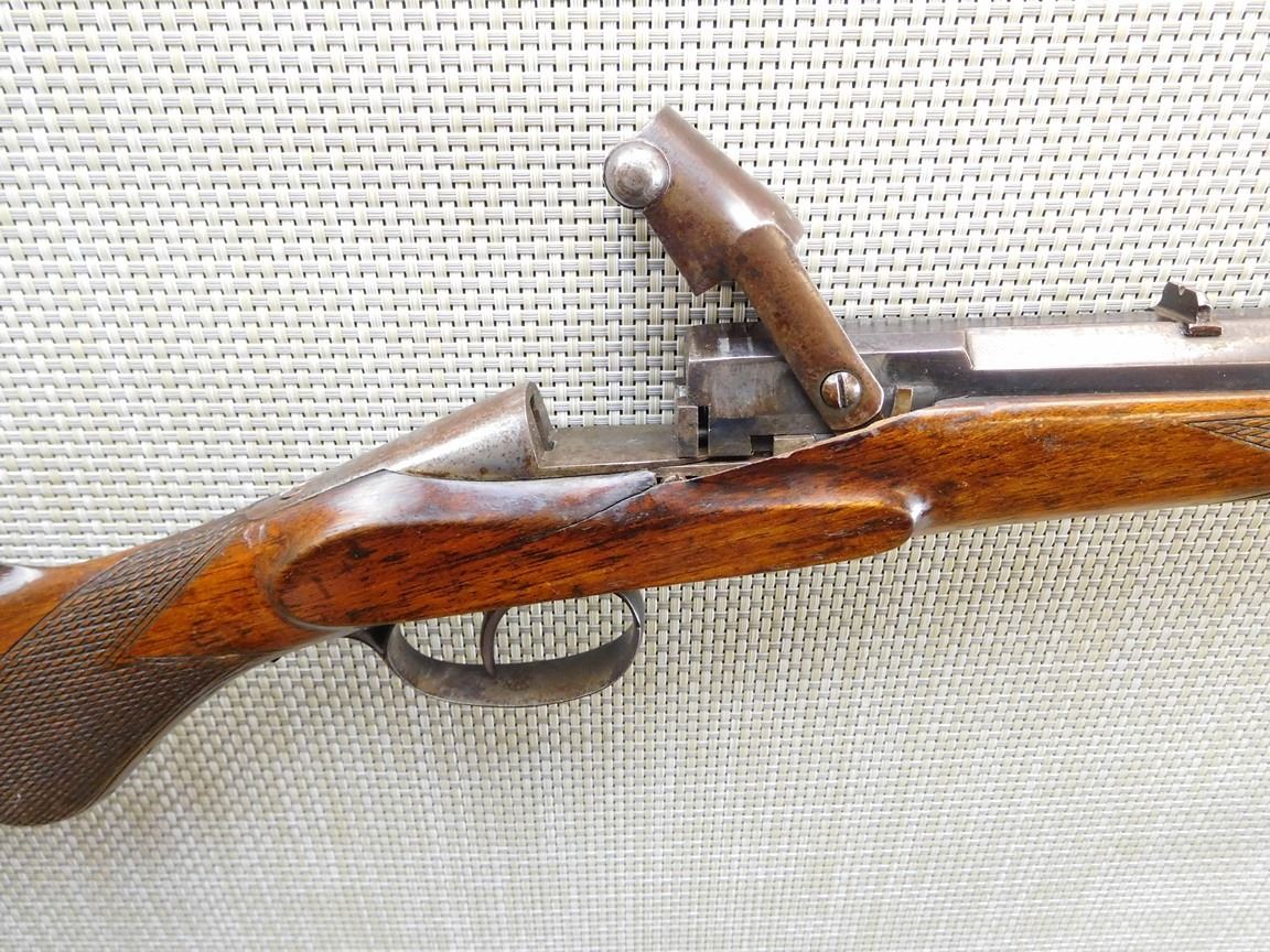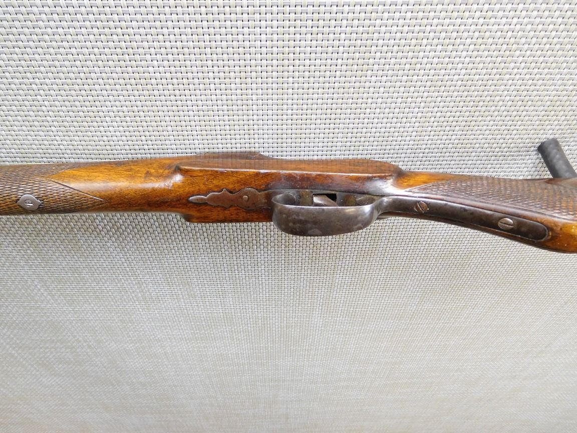 BORE IS DARK BORE, CRACK IN THE STOCK ABOVE THE TRIGGER, CHECKERED AT THE WRIST, SELF EJECTING HAMMERLESS (ON BARREL) BLADE FRONT AND FIXED REAR SIGHT, OCTAGONAL BARREL , BARREL LENGTH: 24" , SERIAL: N/A , ACTION: WARNANT ACTION , CONDITION: 6/10 ANTIQUE , , CLASS: CANADIAN ANTIQUE CLASS