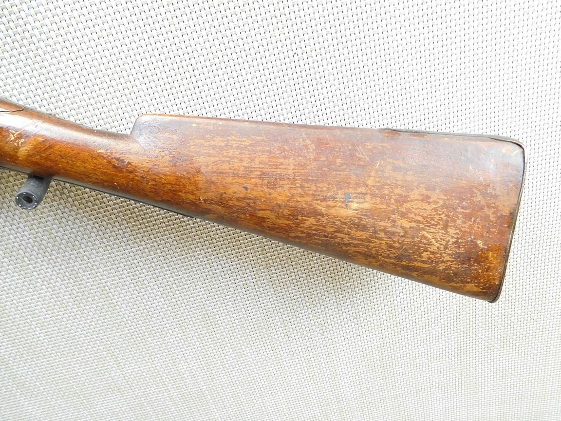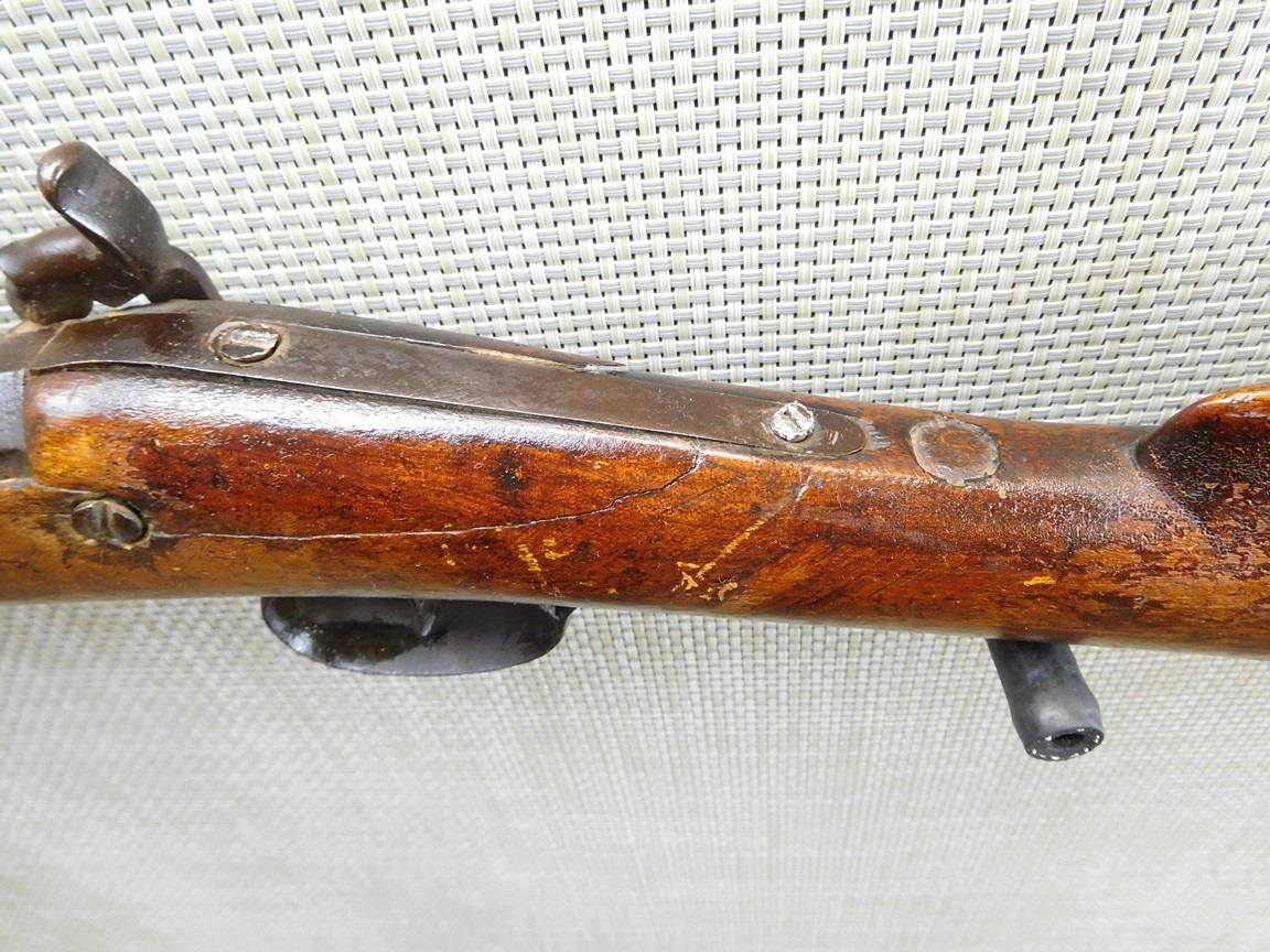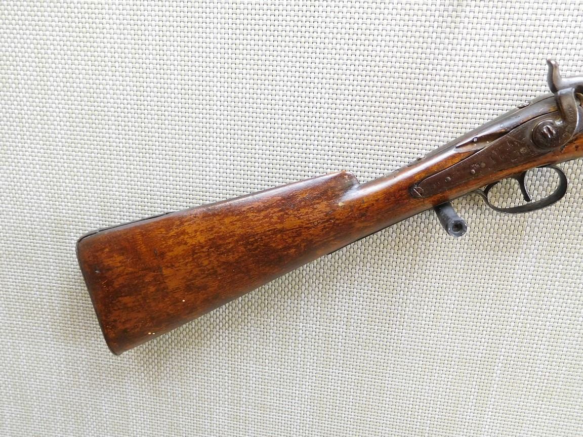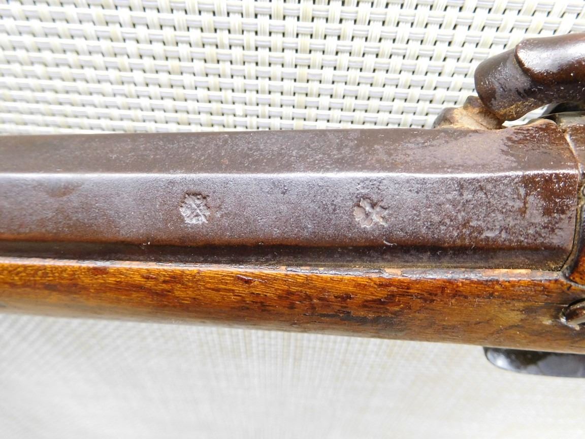 WOOD STOCK, BEAD SIGHT, METAL BUTT PLATE, BROWN PATINA, STOCK IS CRACKED , BARREL LENGTH: , SERIAL: N/A , ACTION: PERCUSSION SHOTGUN , CONDITION: 4/10 , , CLASS: CANADIAN ANTIQUE CLASS