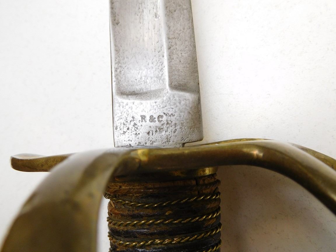 "OLD WRISTBREAKER" , BLADE IS STAMPED R C THERE IS SOME FINISH WEAR TO THE SCABBARD AND THE SWORD