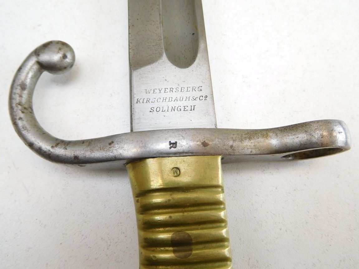 MADE BY WEYERSBERG KIRSCHBAUM & CO, SOLINGEN, NUMEROUS MARKS ON THE BLADE AND SCABBARD