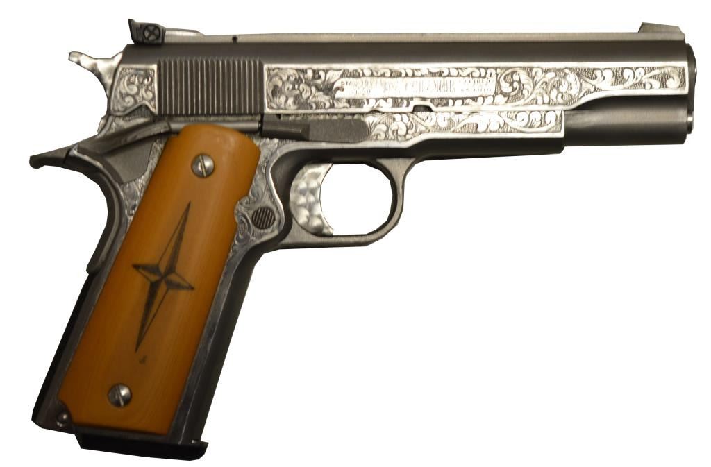 Engraved with Personal Grips. Comes with a copy of his Book and a holster. 2 extra mags.