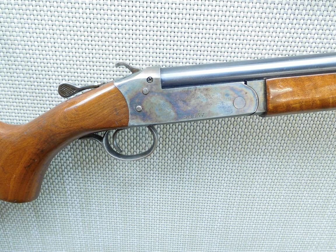 FIXED FULL CHOKE, BEAD FRONT SIGHT, RECOIL PAD, CASE COLOURED RECEIVER, AVERAGE BOOR , BARREL LENGTH: 28" , CONDITION: 7/10 , STOCK # 7062 , SERIAL # 50547 , ACTION: SINGLE SHOT BREAK ACTION SHOTGUN , CLASS: CANADIAN NON RESTRICTED CLASS