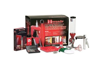 Hornady, Lock-N-Load Classic Kit containing Lock-N-Load Classic Single-Stage Press, Lock-N-Load Powder Measure, Electronic Scale, Powder Trickler, Funnel, 10th Edition Hornady Handbook of Cartridge Reloading, Three Lock-N-Load Die Bushings, Primer Catcher, Positive Priming System, Hand-Held Priming Tool, Universal Reloading Block, Chamfering and Deburring Tool, Primer Turning Plate, and One Shot Case Lube