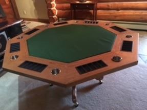 This beautifully crafted oak Poker Table is made by local member Terry Hill. This 8-sided table is 63 inches wide and measures 30 inches above the floor. We thank Terry for this donation. VALUE: $1000.00