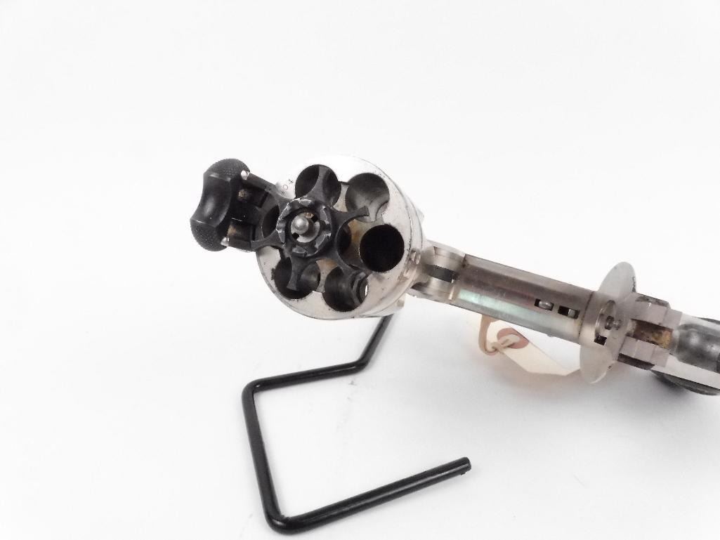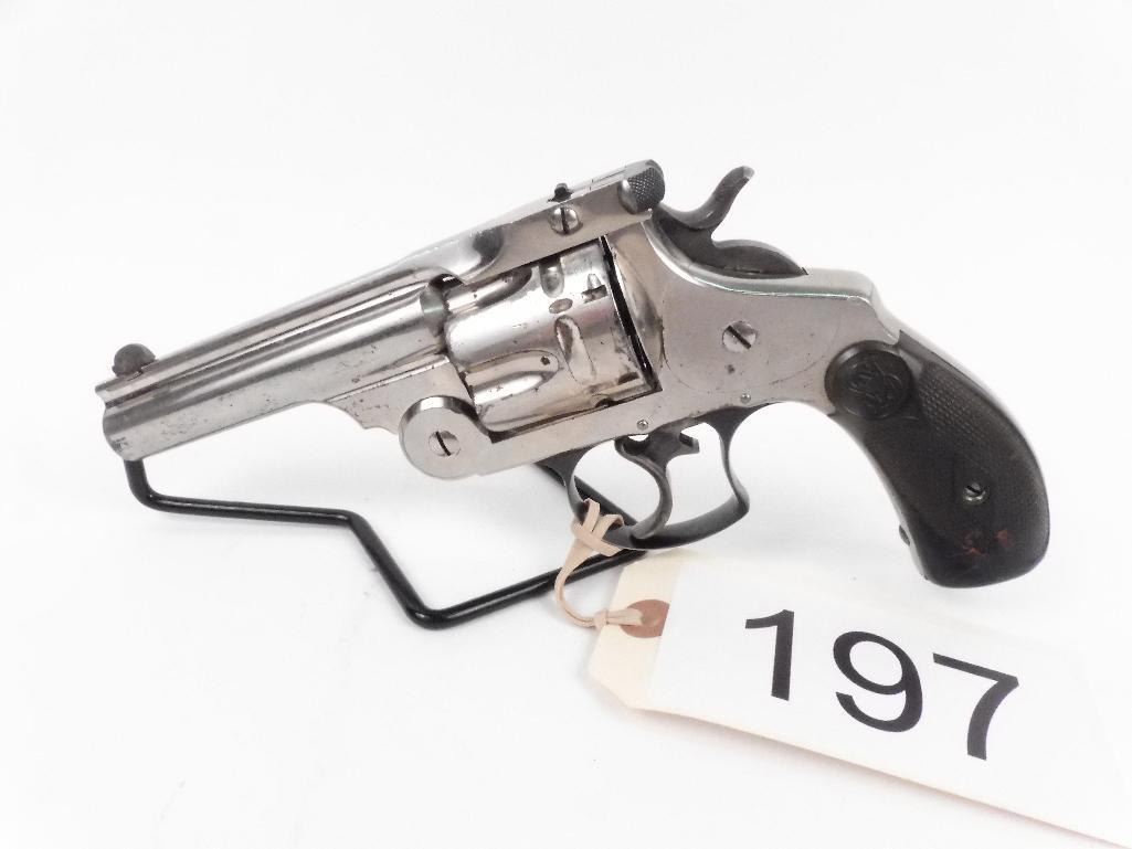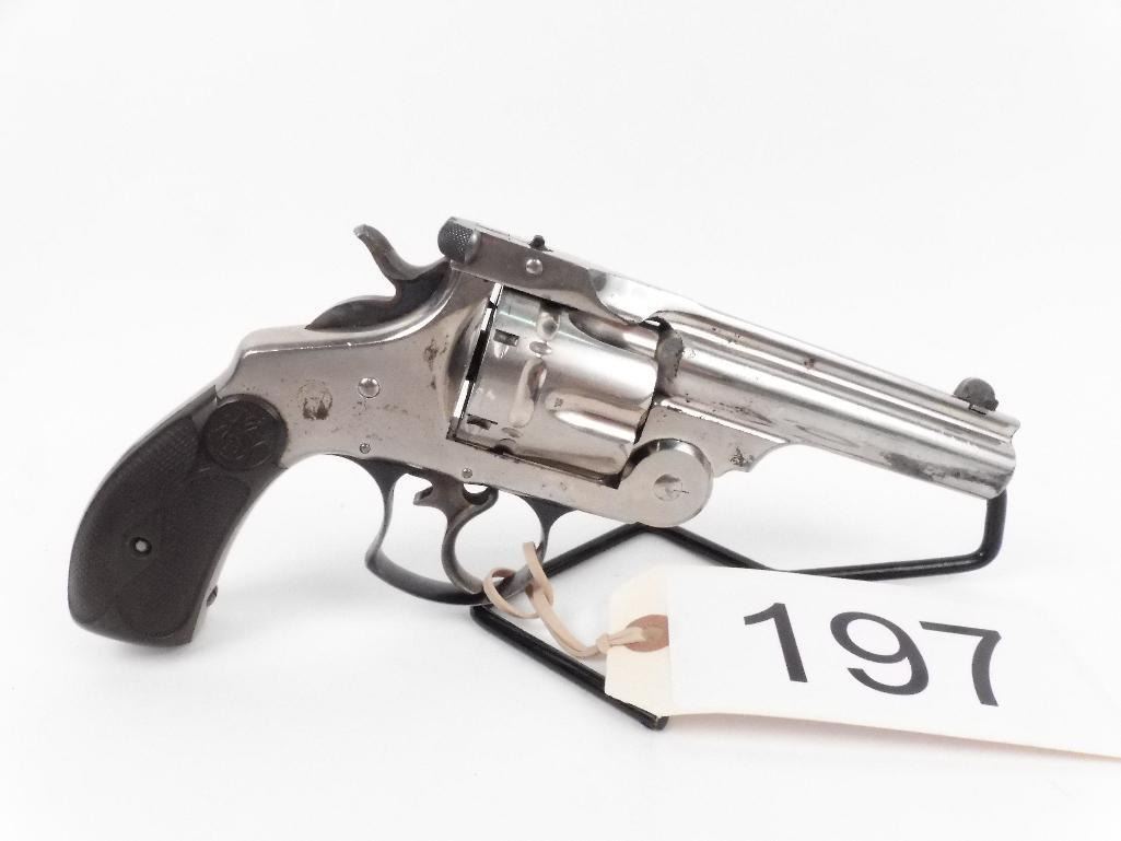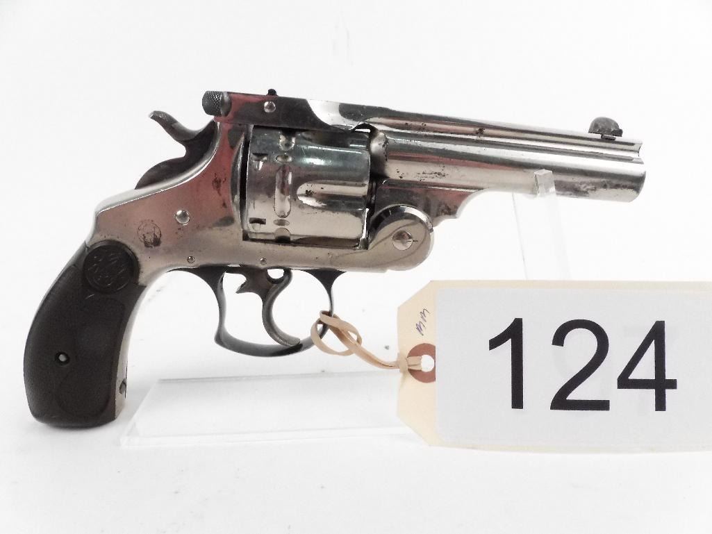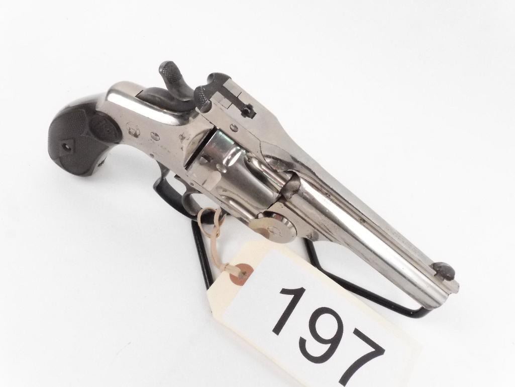 Smith and Wesson's first foray into double action pistols Nickle plated Very good to excellent condition 44.40 Indexes perfectly Make: Smith & Wesson Condition: Good to Very Good Barrel Length: 4" Model: 3 Top Break Caliber: 44-40 Serial # - Firearms: 9404