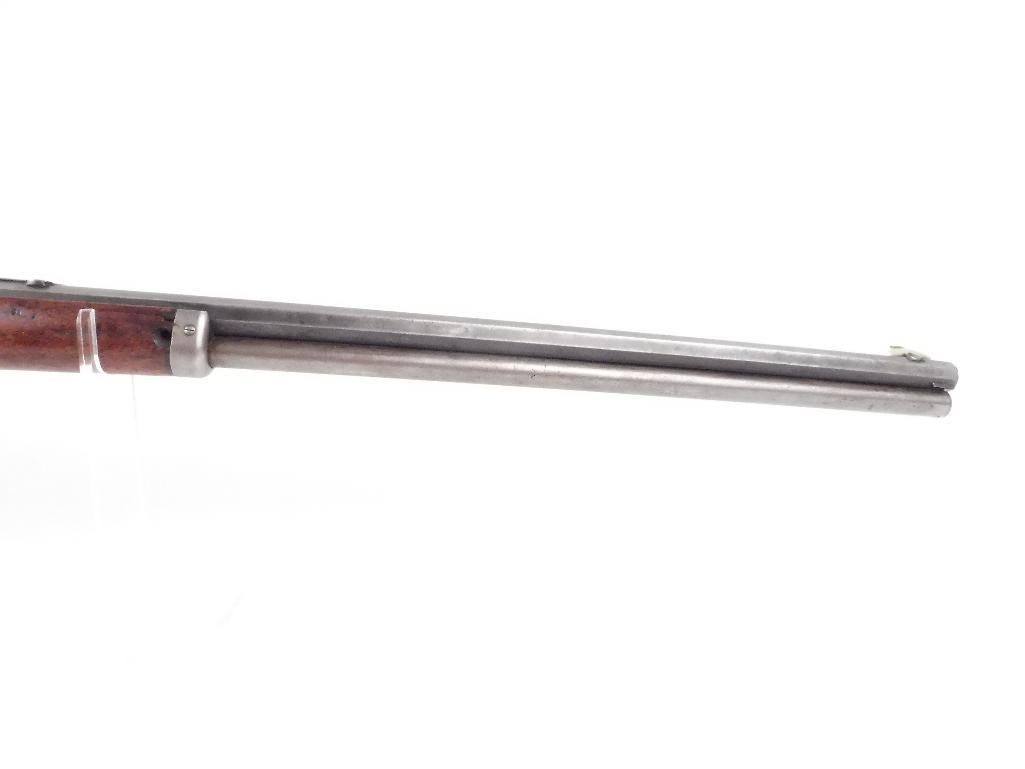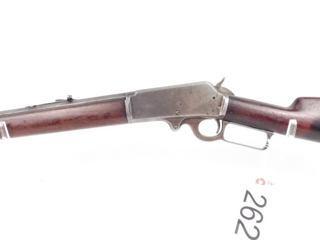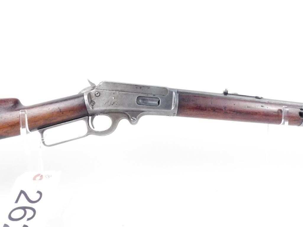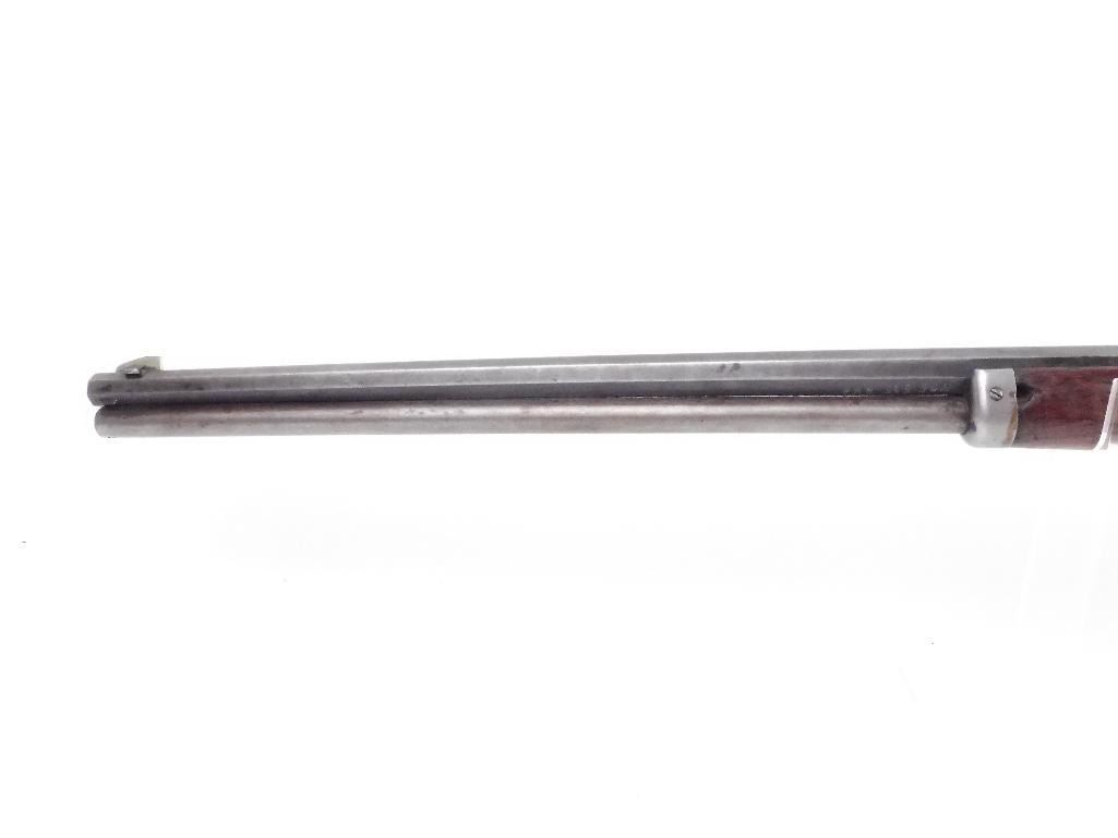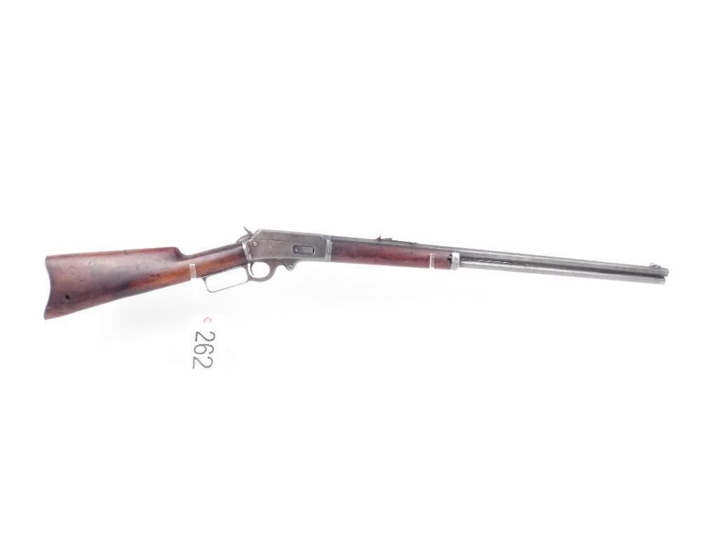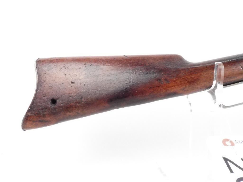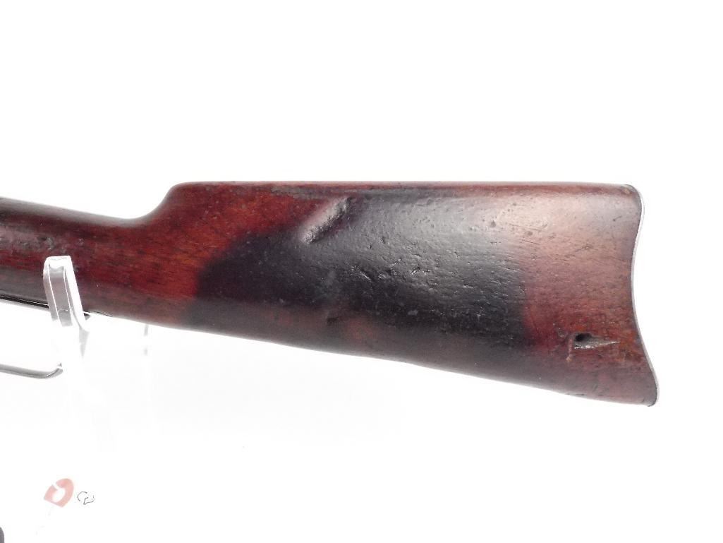 Appears fully complete Expected patina Octagonal barrel No visible rusting anywhere Crack in the fore-end Likely a sling was installed using bolts through the fore-end and butt-stock Big black stain on left side of butt-stock Receiver screw replaced Make: Marlin Condition: Good Barrel Length: 26" Model: 1893 Caliber: 30-30 Serial # - Firearms: 387510