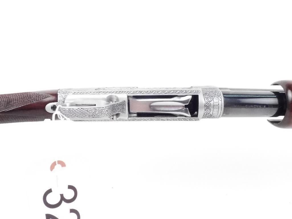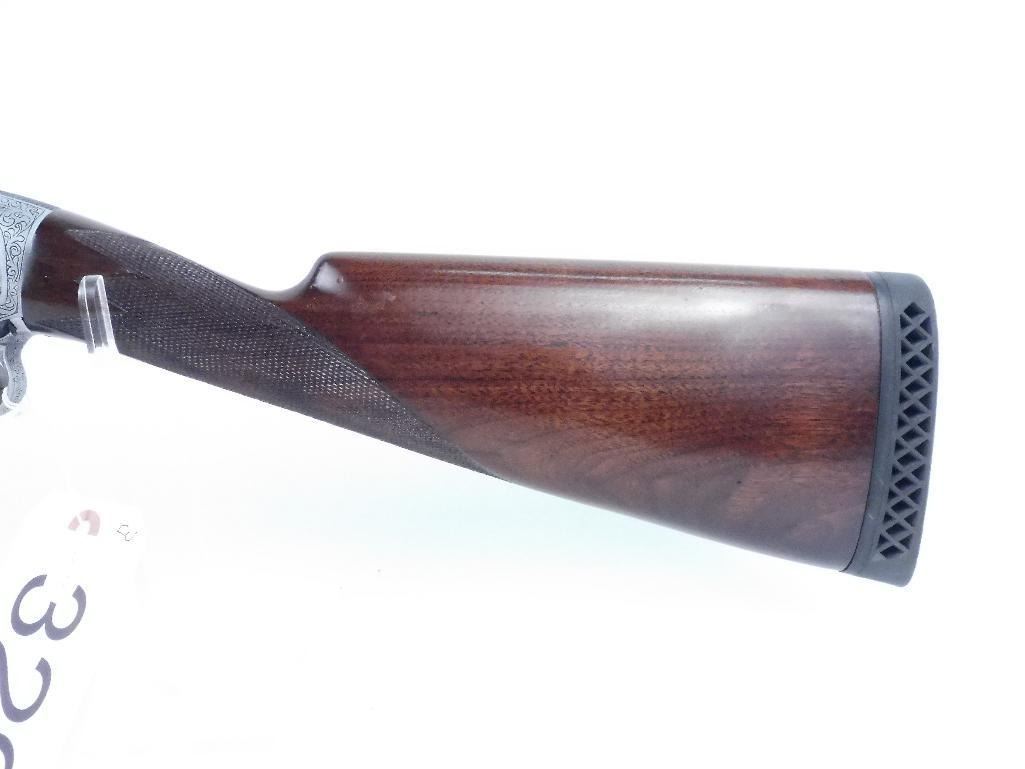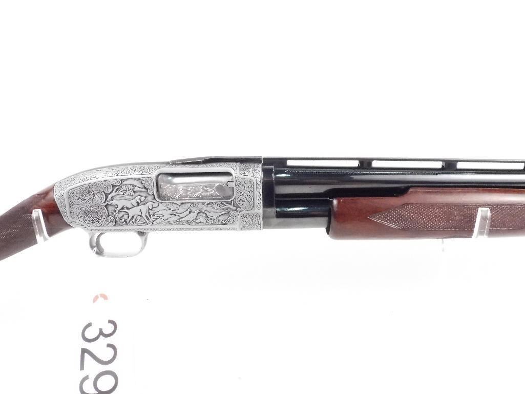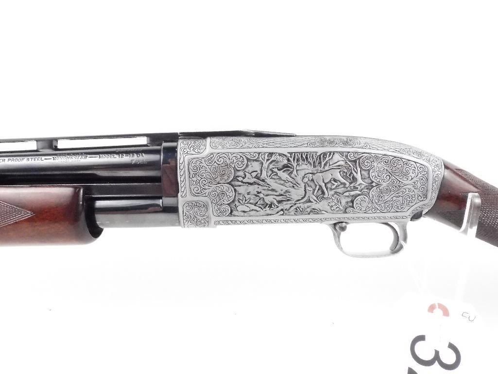High gloss bluing Heavily engraved receiver Engraved bolt Pachmayr pad Hand checkering Choke inserts Stock is immaculate Barrel has the tiniest most inconsequential scratches This gun will make your shooting buddies drool Shotgun Gauge: 12 Gauge Make: Winchester Condition: Excellent Year: 1938 Barrel Length: 24" Full Model: 12 Serial #: 811121