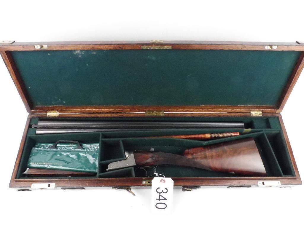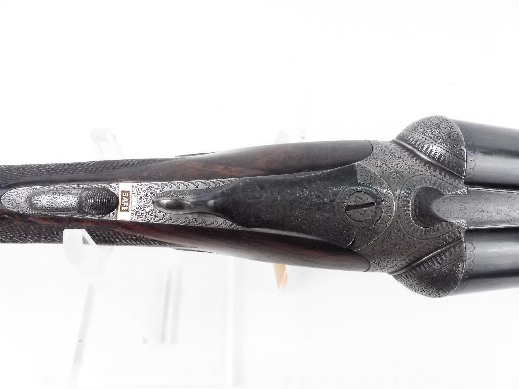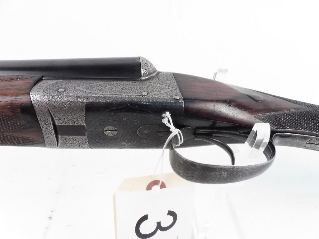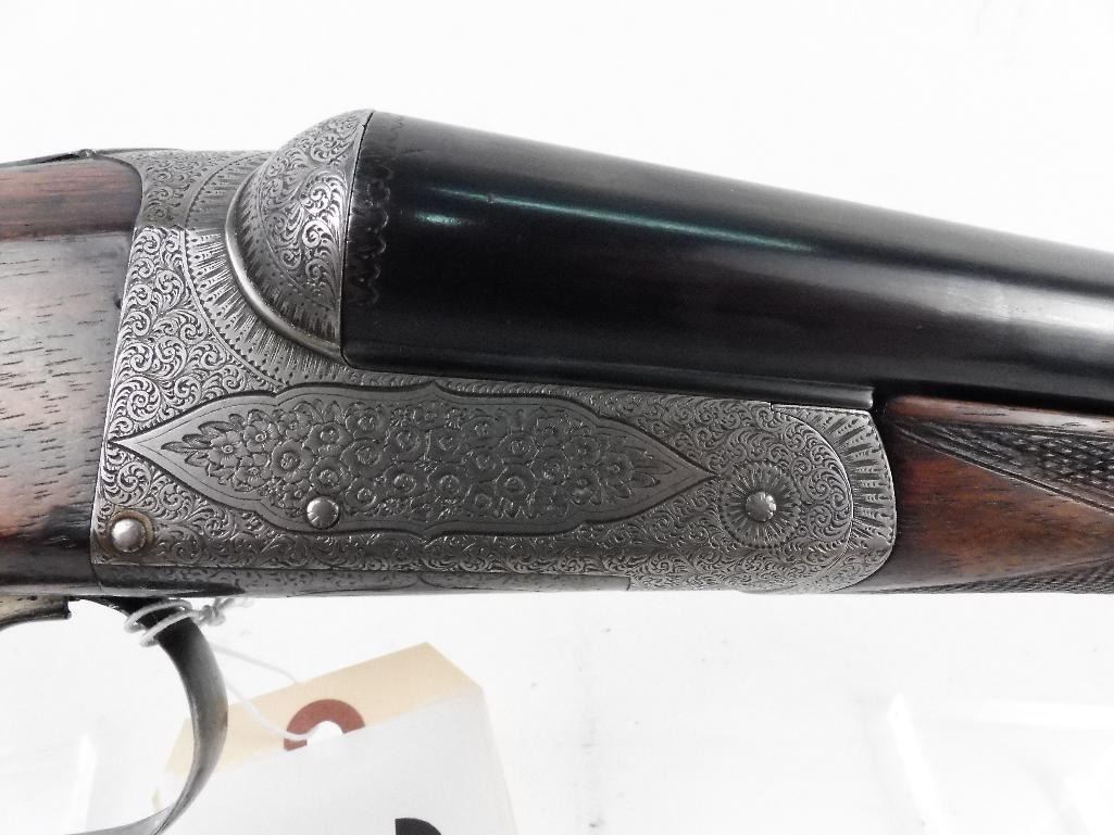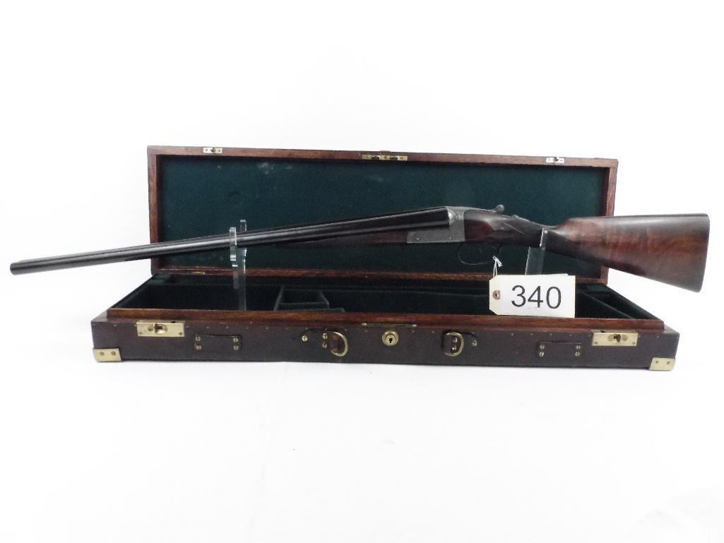 Gorgeous English side/side Likely made by Cogswell and Harrison, Ireland William Ford barrels, Birmingham 13/1 and 15/1 chokes. 26" barrels. Ser. # 6491. Action is absolutely tight. This gun is without any dings, scratches or marks of any kind. Checkered butt.