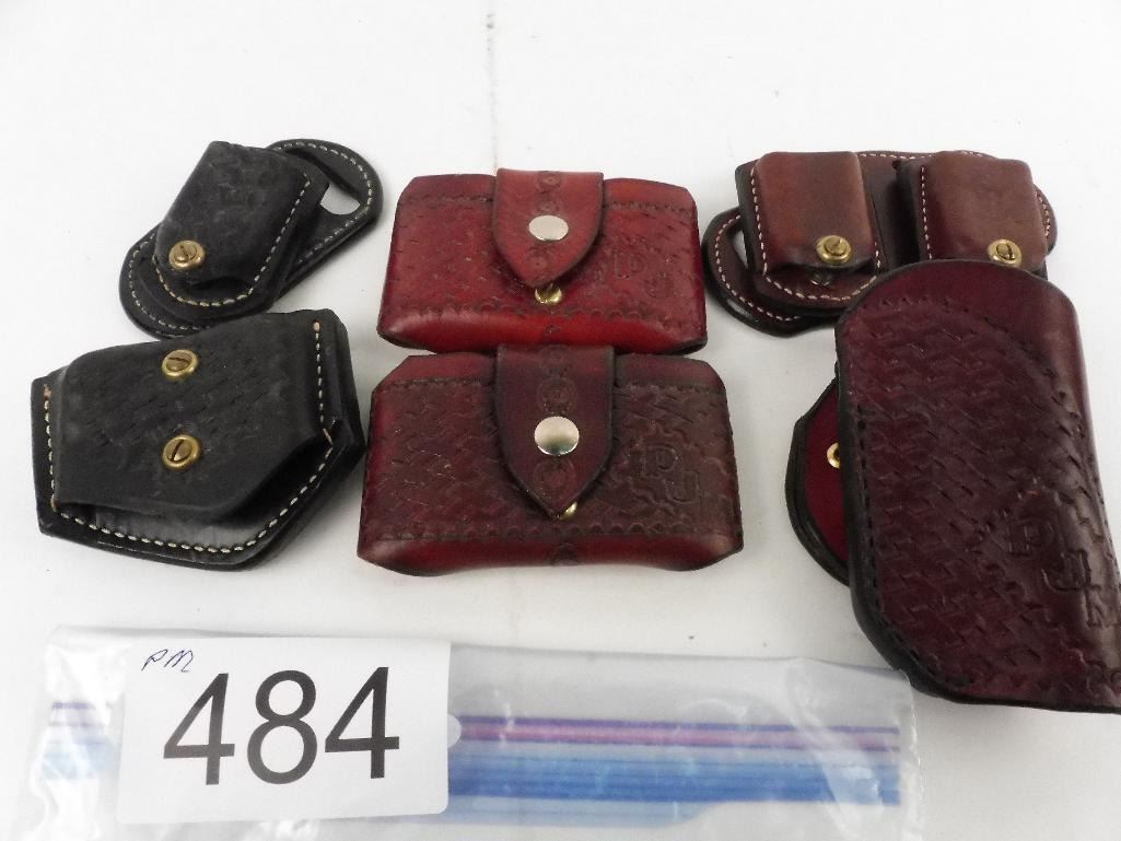 Lot 484 1 leather holster + 2 leather mag pouches (PJM) + 3 leather single stack mag pouches (Ernie Hill)