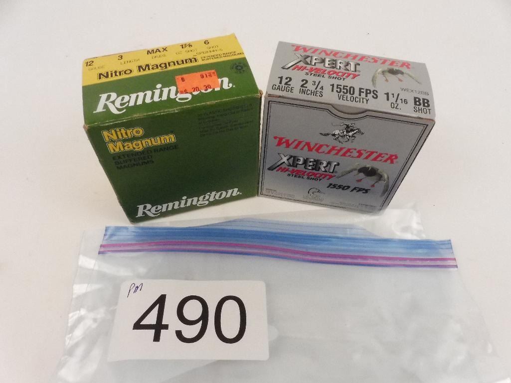 Lot 490 1 box 25 rounds 12 gauge 3" Magnum + 25 rounds Winchest expert high velocity steel shot