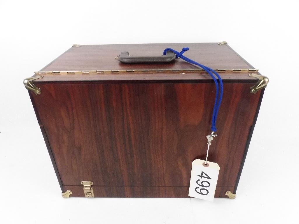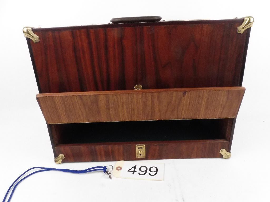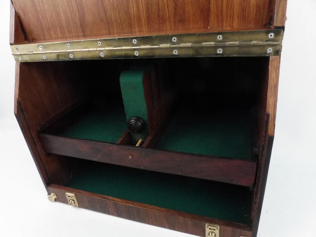 In excellent condition Compartment for 4 handguns 1 key Spotting scope compartment Locking ammo compartment Green felt lining Solid wood