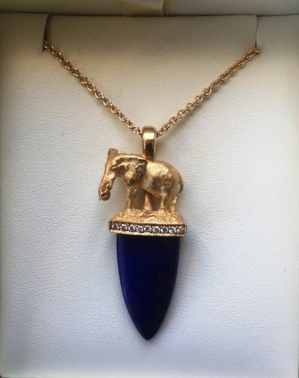 Gunderson's Jewelers is a proud supporter of the Wounded Warrior Project and has donated this 14kt yellow gold hand-carved Elephant & Lapis Lazuli Pendent. This beautiful creation is accented with .10ctw of Diamonds and comes with an 18" - 14kt gold chain. This deep blue Lapis Lazuli stone is said to be the symbol of royalty and honor, gods and power, spirit and vision. It's a universal symbol of wisdom and strength. 100% of the proceeds from this Pendent will go towards funding our Wounded Warrior Weekend. Each year Gunderson's has a booth at the SCI Convention in Las Vegas, so if you're attending next year's convention and are looking for good quality jewelry, stop by and see them at the show.