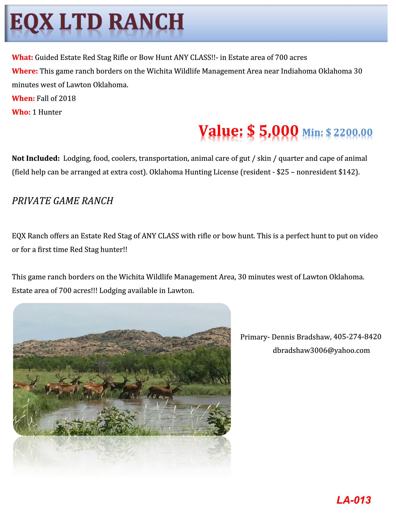Important Notice Your invoice is your donation document. We are not tax lawyers and do not make any statement to the usage of your donation. All Hunts Include Lodging and Food unless otherwise stated in our Not Included Section.