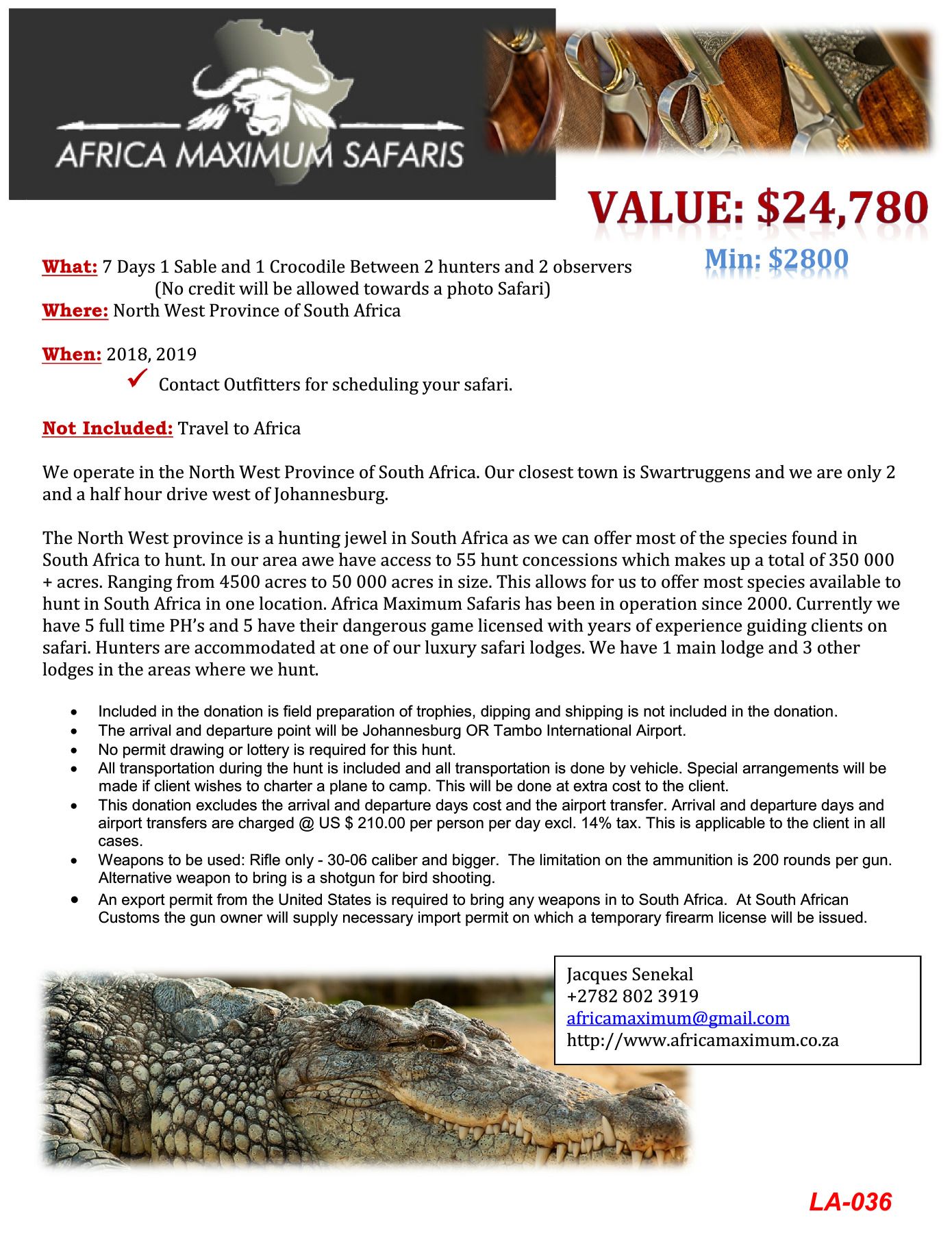 Lot 36 Africa Maximum Safaris