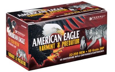 Federal, American Eagle Varmint & Predator, 22-250, 50 Grain, Jacketed Hollow Point, 50 Round Box