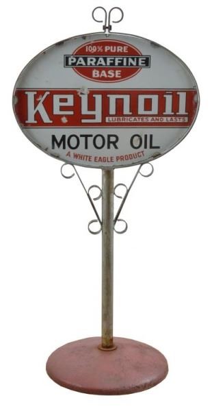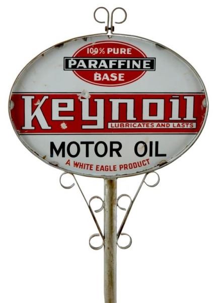 Lot 54 Keynoil Motor Oil D/S Porcelain Lollipop Sign