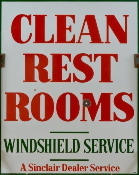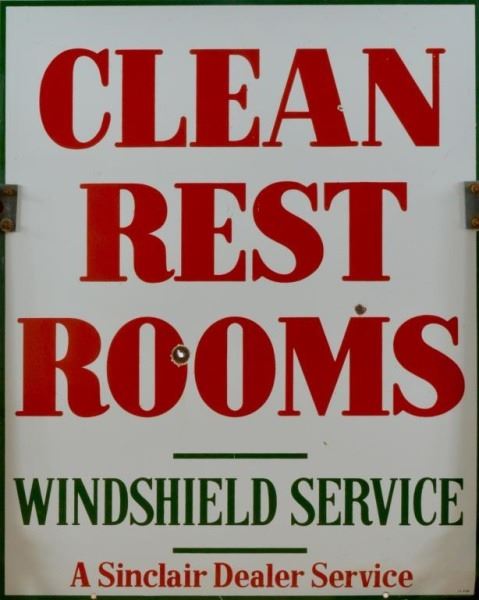 Lot 62 Sinclair "Clean Restrooms" D/S Porcelain Sign